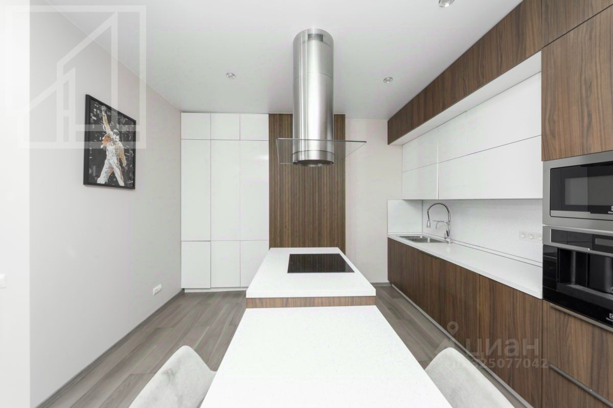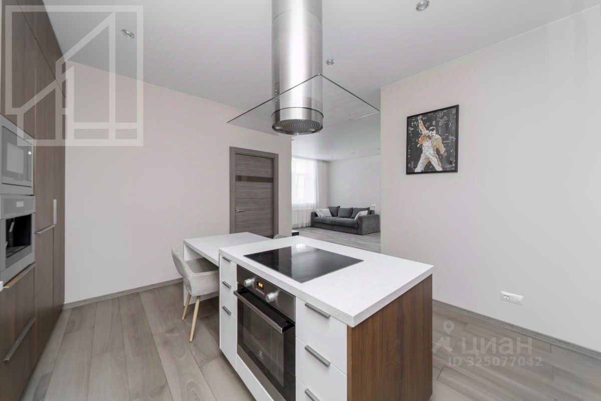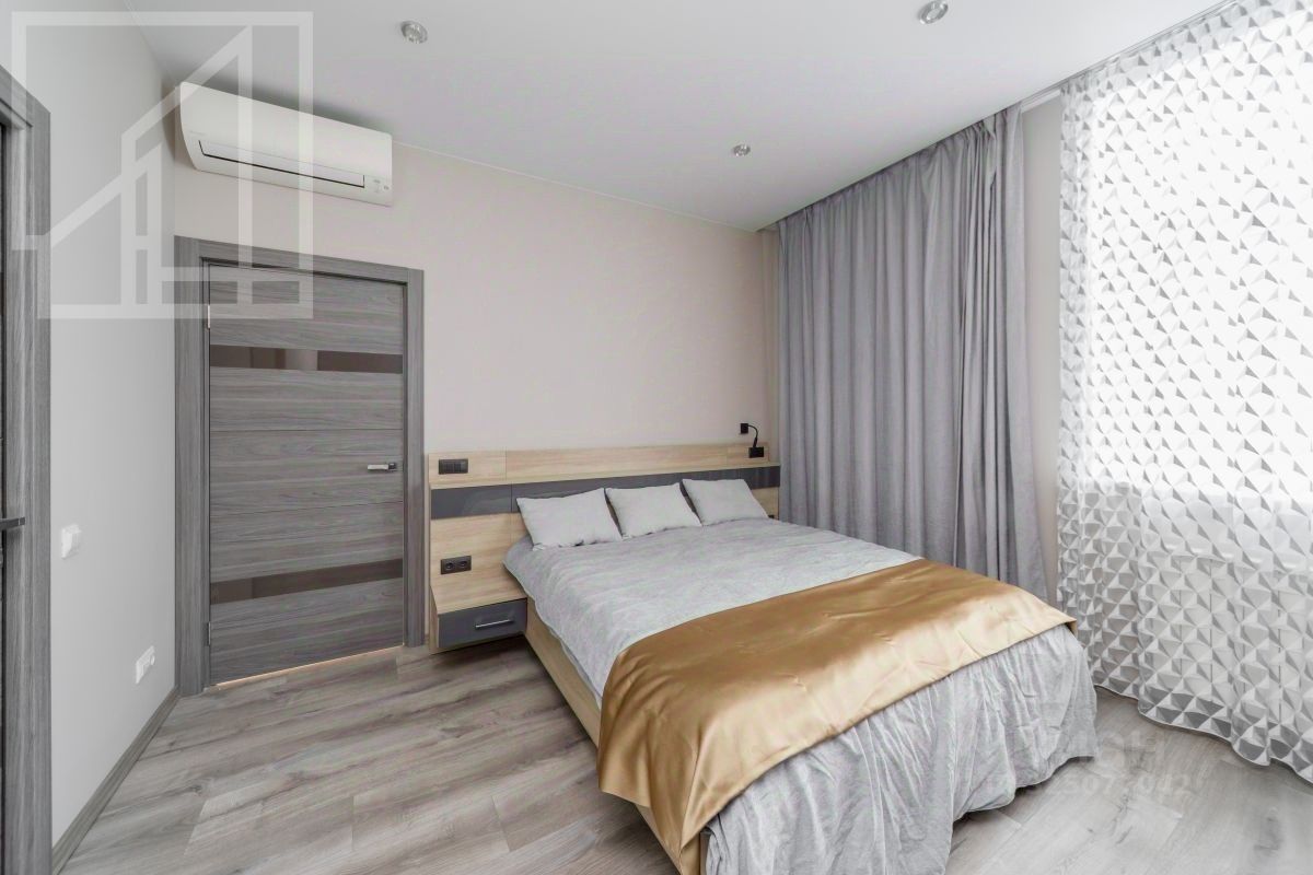 Планировка включает: кухня-гостиная, спальня, комната свободного назначения, санузел при главной спальне, гостевой санузел, гардеробная. Квартира оснащена всей необходимой техникой.