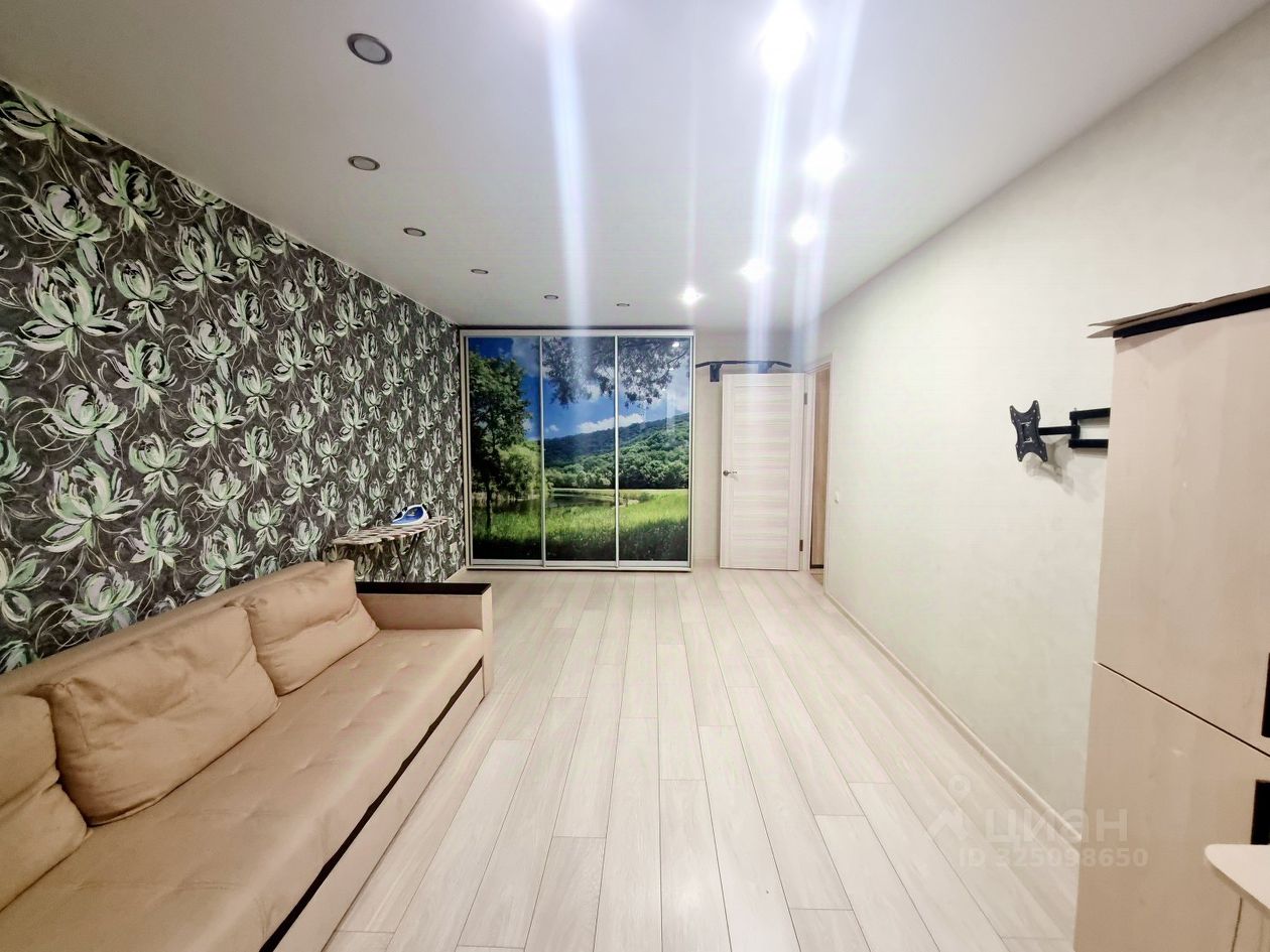 Полностью меблирована: шкафы в прихожей, большой шкаф-купе в комнате, кровать, диваны.