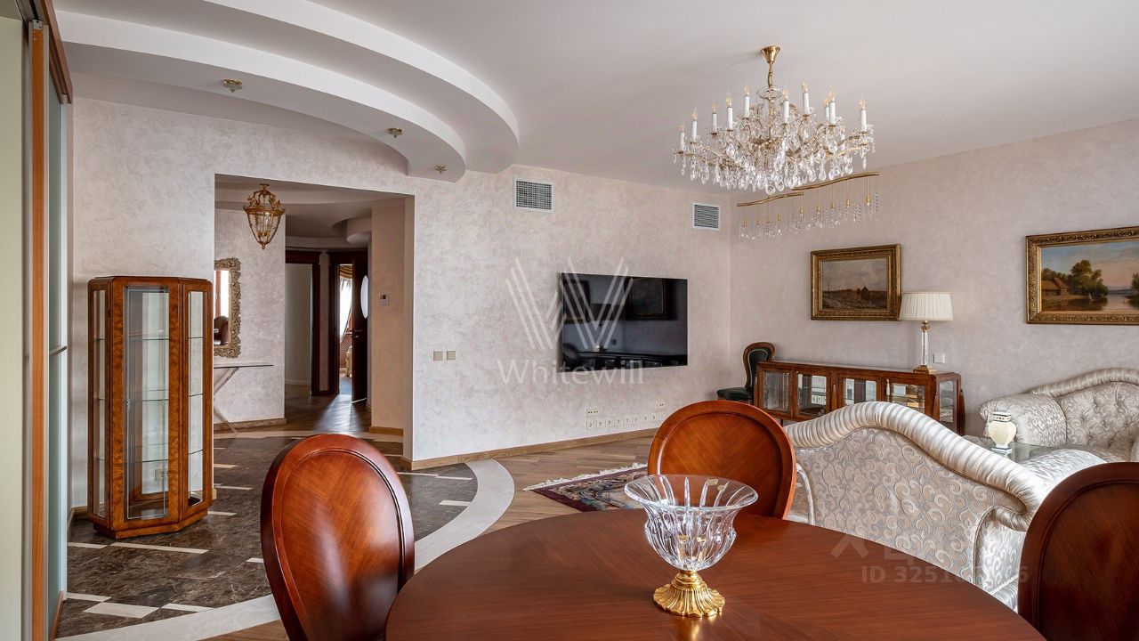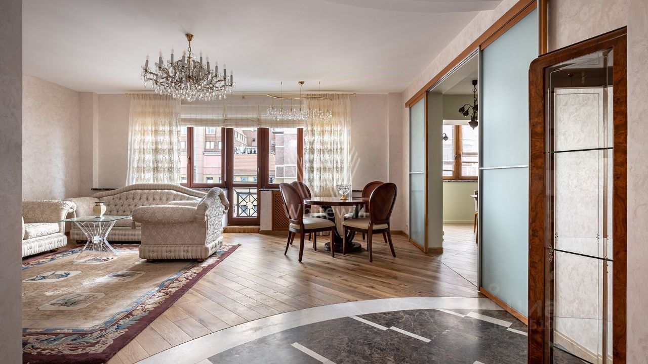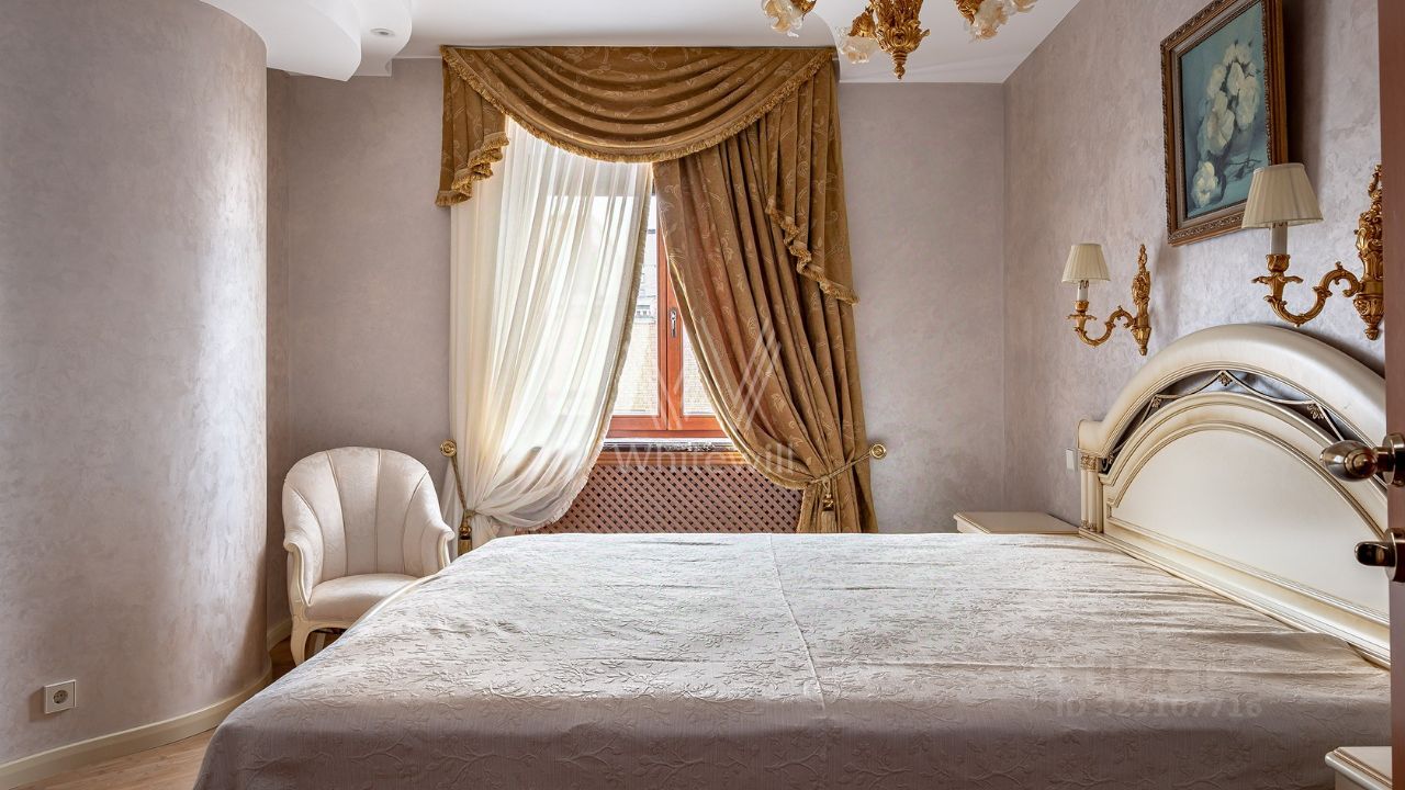 Бонус партнёрам 50%. Заселение после 20 января. Уютная квартира с 2-мя спальнями общей площадью 125 м² в клубном доме недалеко от Патриарших прудов. Выполнен ремонт в классическом стиле, продуманы различные сценарии освещения. Квартира укомплектована мебелью и техникой для вашего комфортного проживания, интерьер дополняют картины. Планировка включает гостиную, кухню-столовую с лоджией, 2 спальни, 2 ванной комнаты, сауна,. Одна из спален может быть использована как кабинет, детская или гостевая комната. М/м возможно арендовать дополнительно.