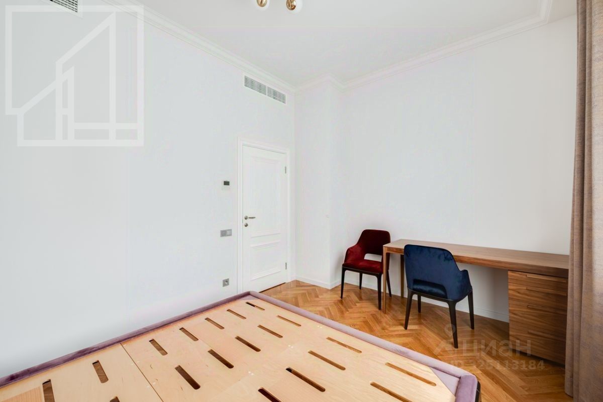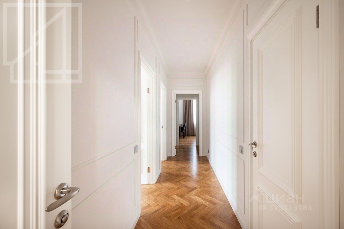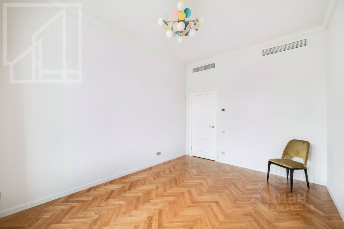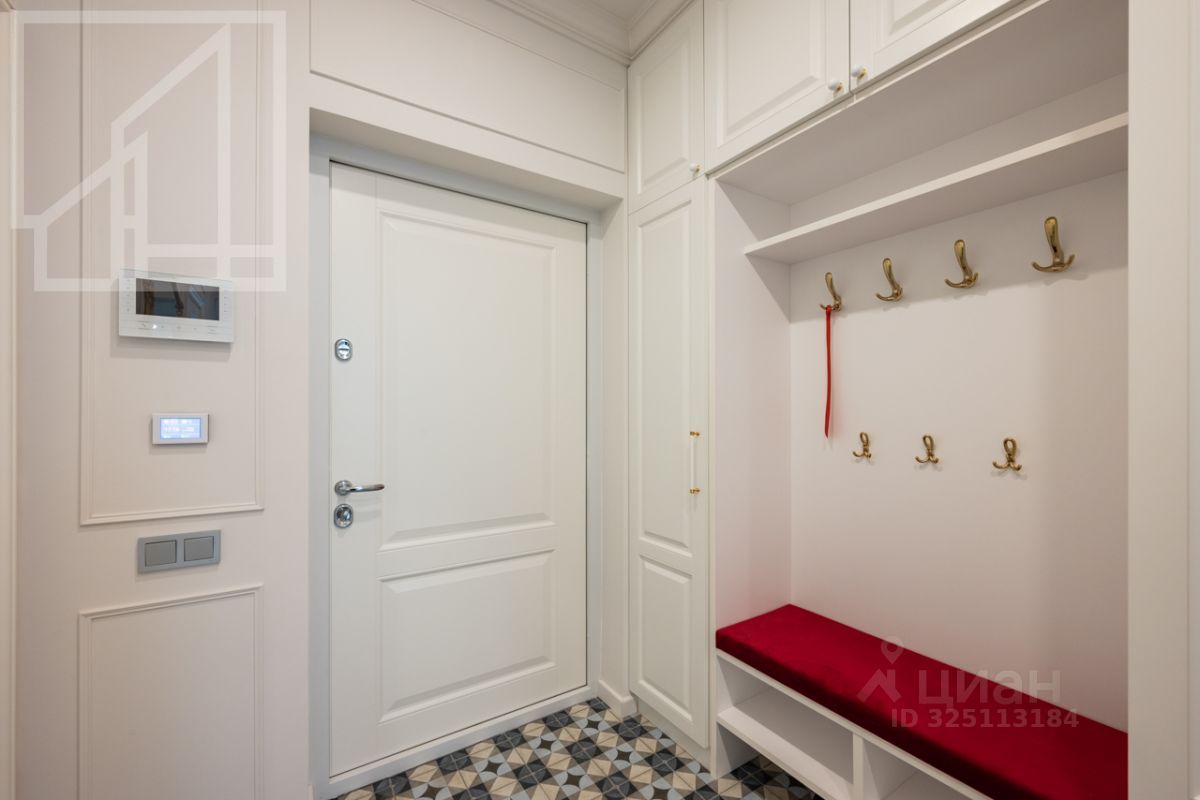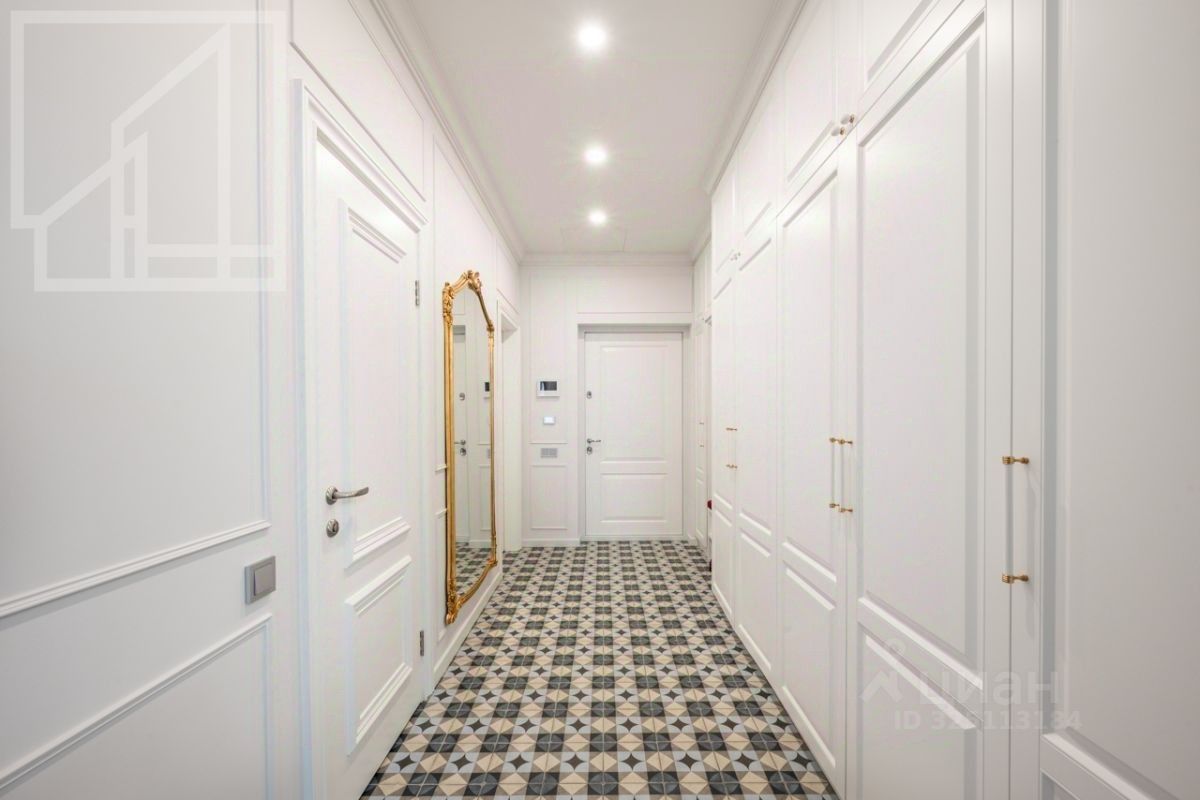 Планировка: гостиная с обеденной зоной, кухня, мастер-спальня с гардеробной и санузлом, детская со смежной комнатой-спальней, детская, санузел с ванной, гостевой санузел с душем, гардеробная при входе. Окна выходят во двор. В квартире выполнен авторский ремонт в светлых тонах. Квартира частично меблирована и оснащена всей необходимой техникой.