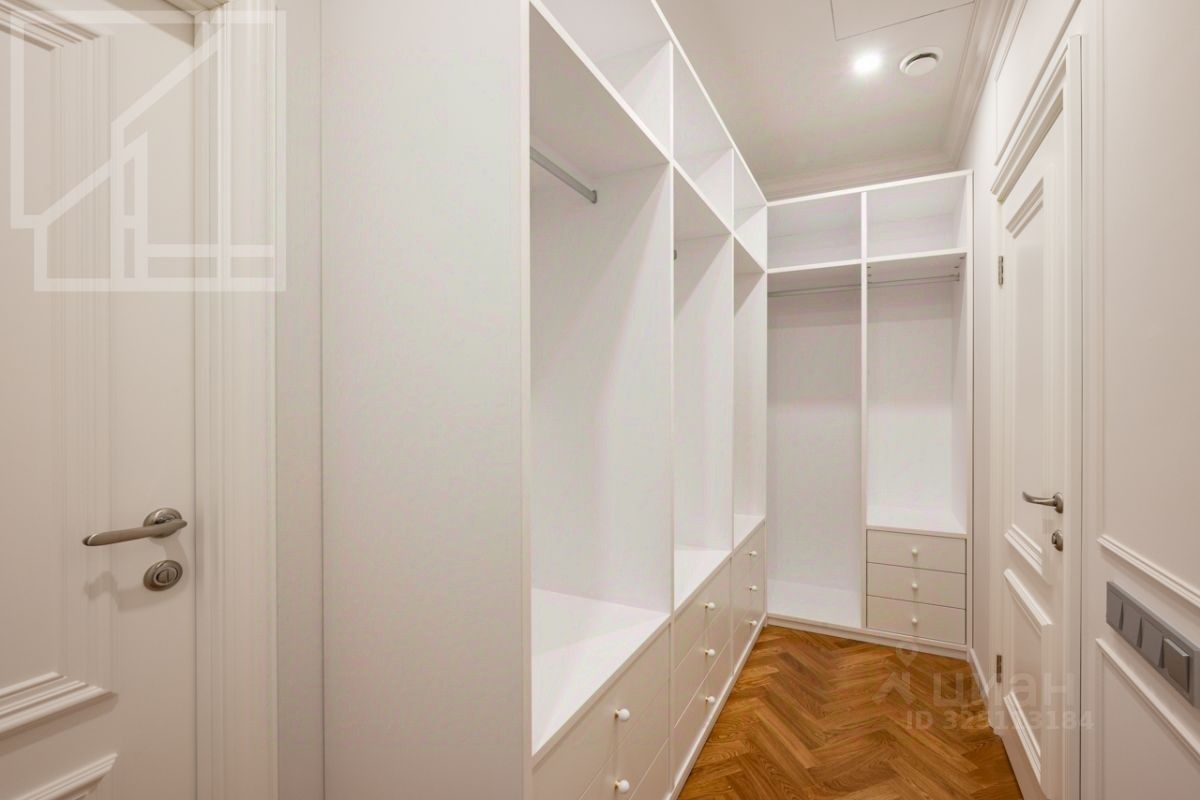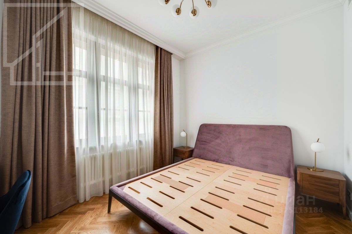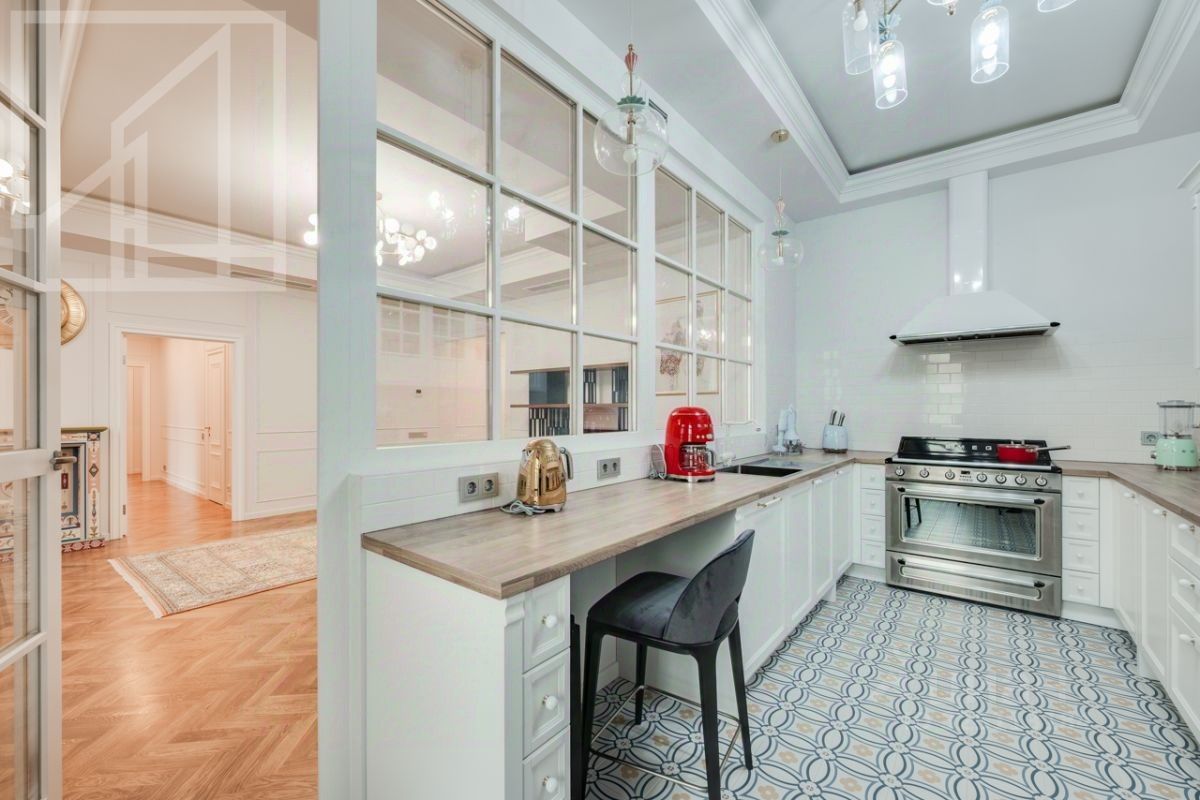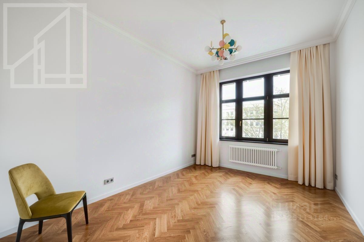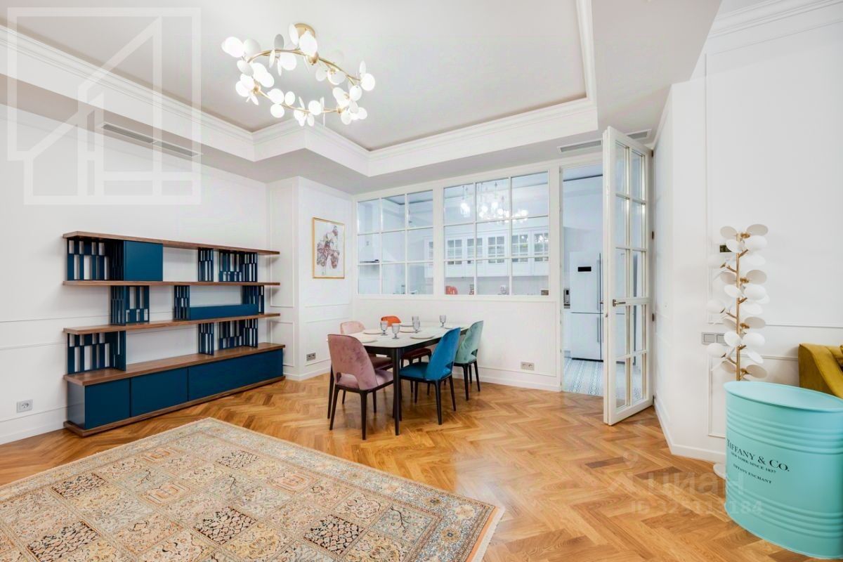 Планировка: гостиная с обеденной зоной, кухня, мастер-спальня с гардеробной и санузлом, детская со смежной комнатой-спальней, детская, санузел с ванной, гостевой санузел с душем, гардеробная при входе. Окна выходят во двор. В квартире выполнен авторский ремонт в светлых тонах. Квартира частично меблирована и оснащена всей необходимой техникой.