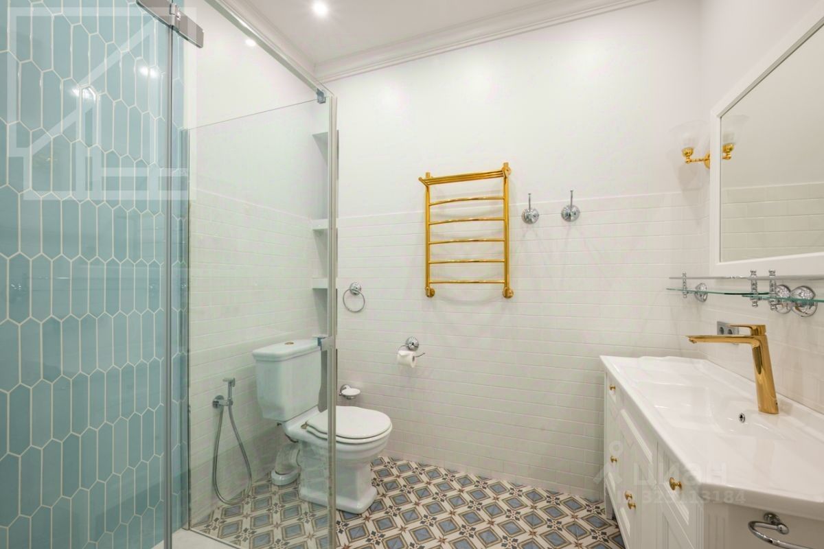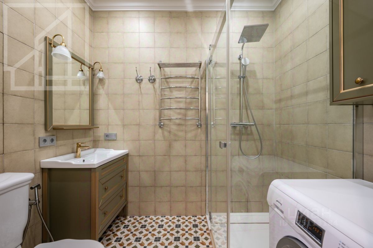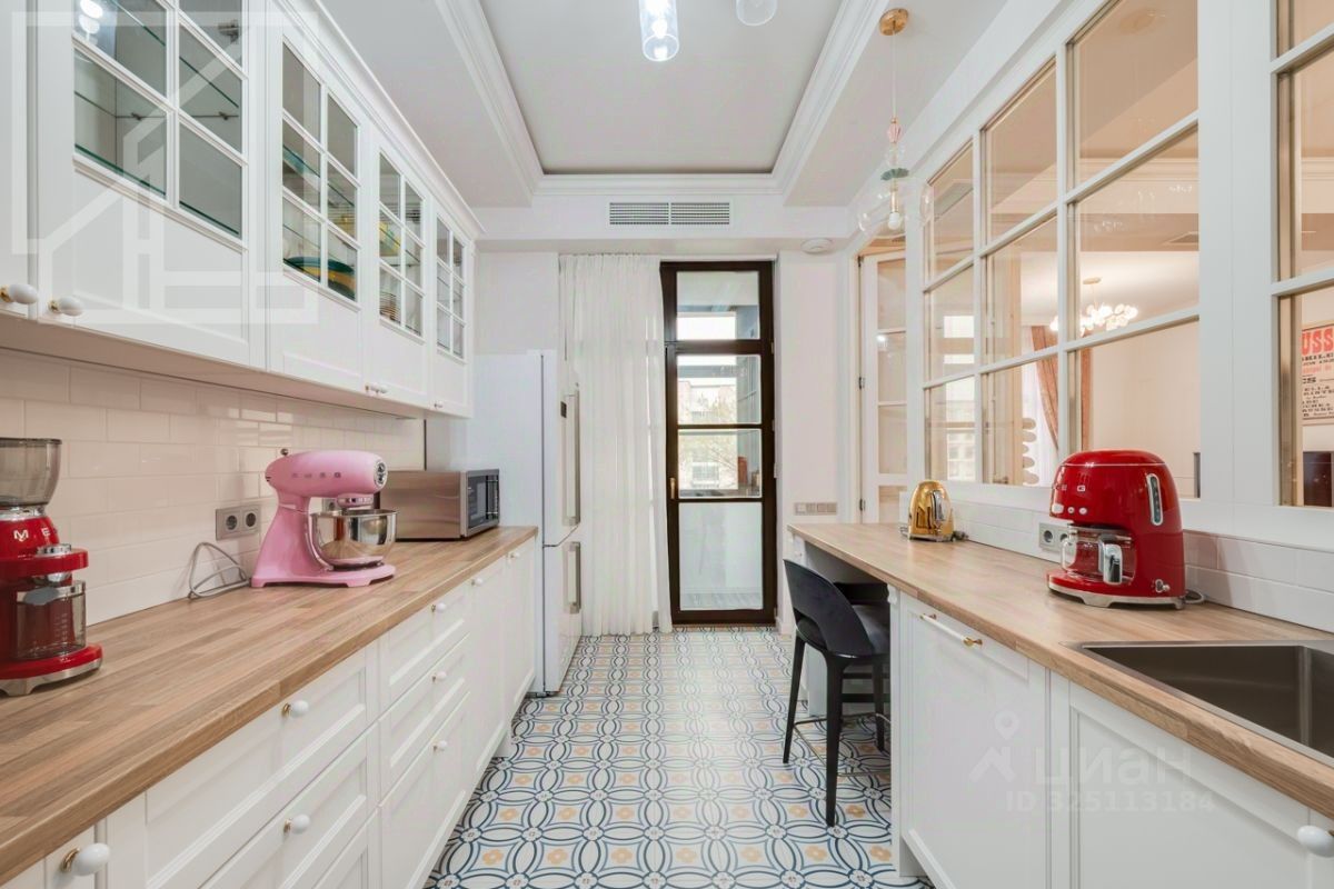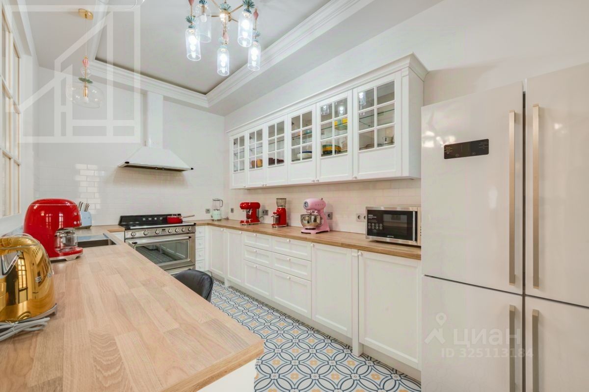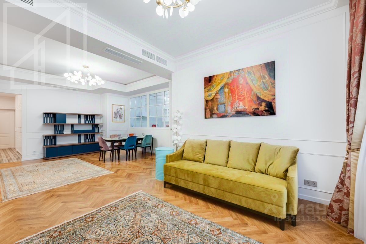 Планировка: гостиная с обеденной зоной, кухня, мастер-спальня с гардеробной и санузлом, детская со смежной комнатой-спальней, детская, санузел с ванной, гостевой санузел с душем, гардеробная при входе. Окна выходят во двор. В квартире выполнен авторский ремонт в светлых тонах. Квартира частично меблирована и оснащена всей необходимой техникой.