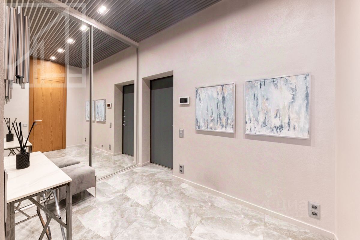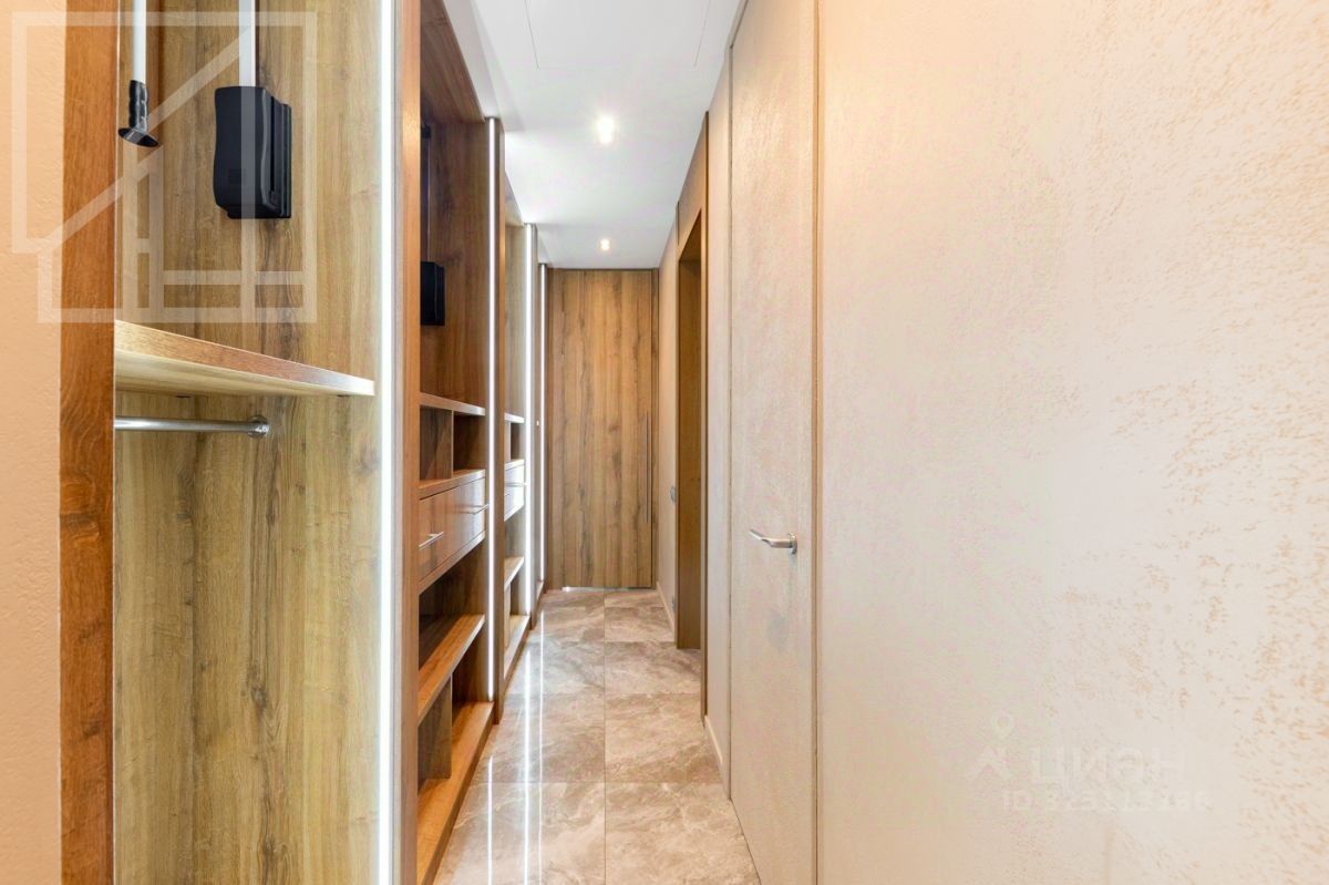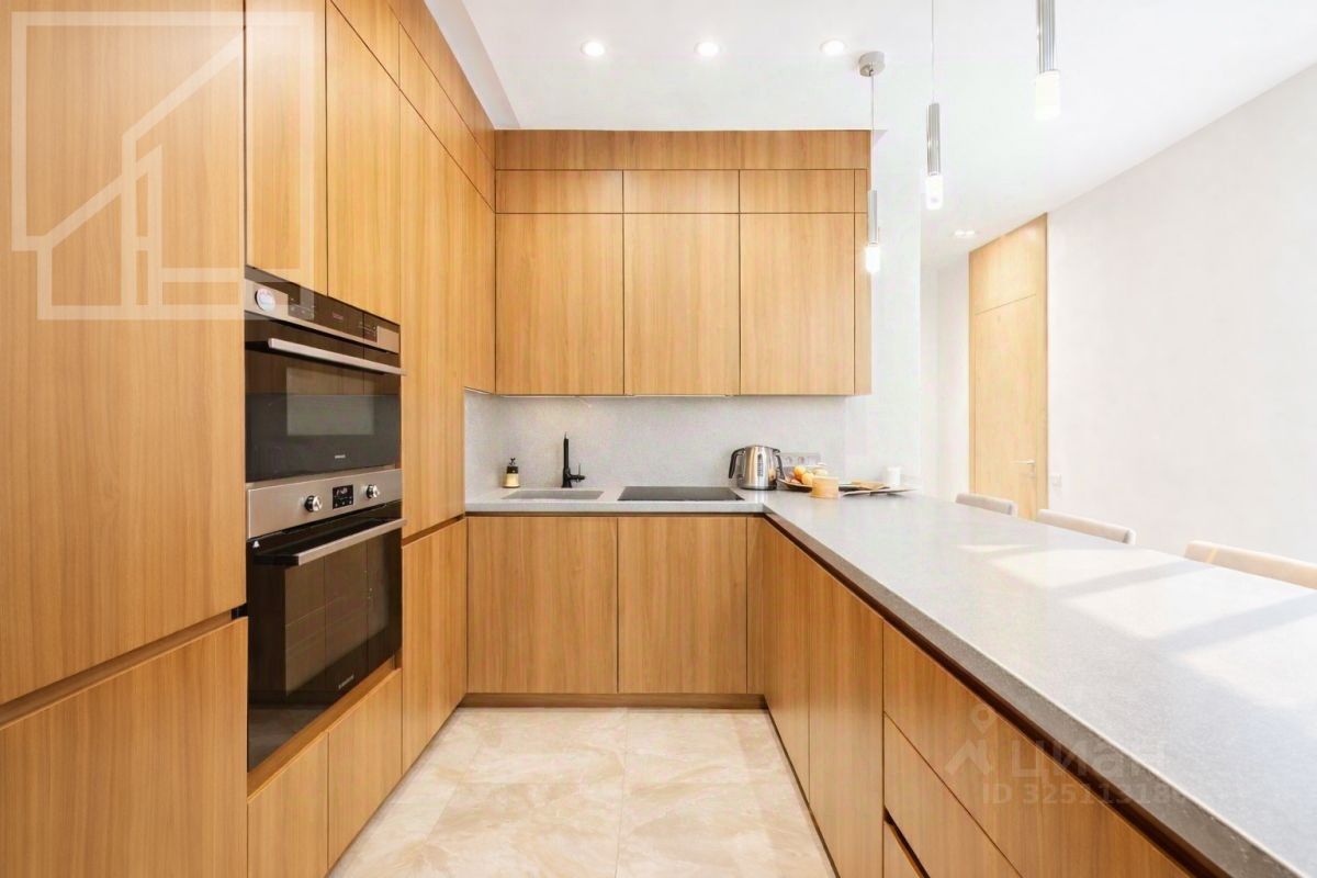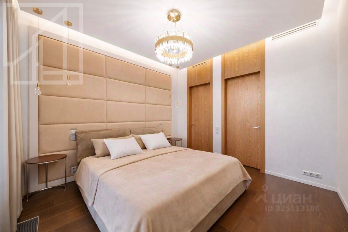 Планировка: кухня-гостиная, 2 спальни, 2 ванные комнаты, 2 гардеробные, холл. Апартамент полностью укомплектован современной мебелью, кухня оснащена встроенной техникой премиум-класса. Выполнена премиальная дизайнерская отделка с использованием натурального дерева и крупного керамогранита. Светлый интерьер оформлен в современном стиле, украшен картинами и авторскими светильниками. Установлена система кондиционирования. Из окон открывается живописный вид на Никольскую церковь.