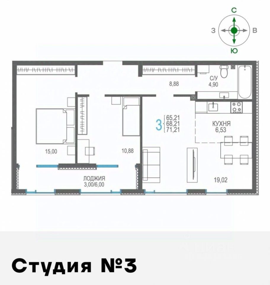 Общая площадь71,21 м2