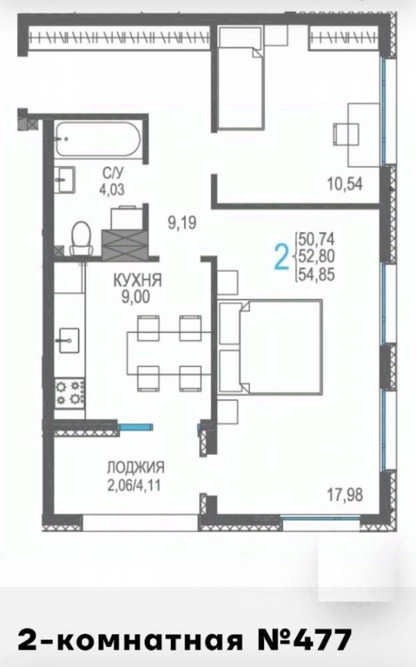 - Общая площадь54 м²