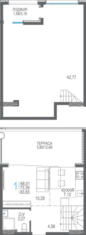 Общая площадь83,83 м2