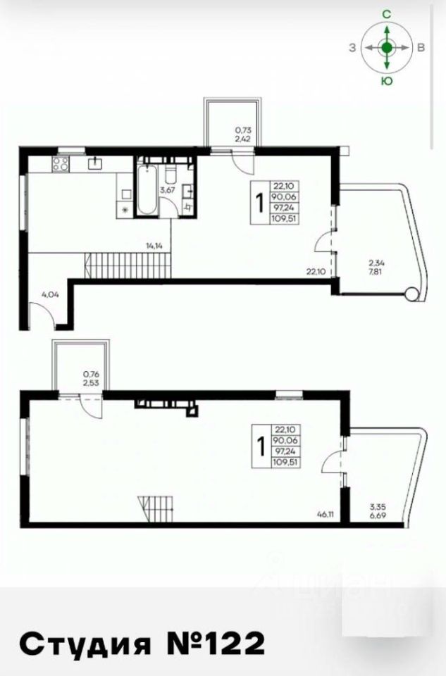 Общая площадь109,51 м2