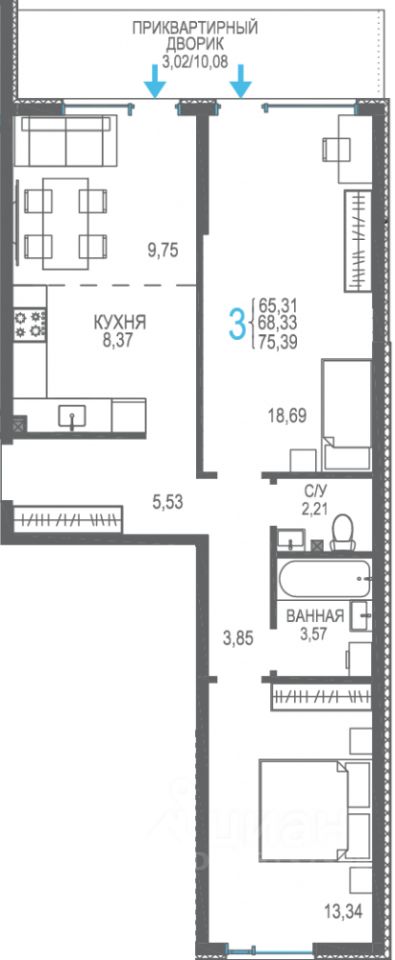 продам 3-к, Лазурная, 1 корп. 112 750 000 ₽