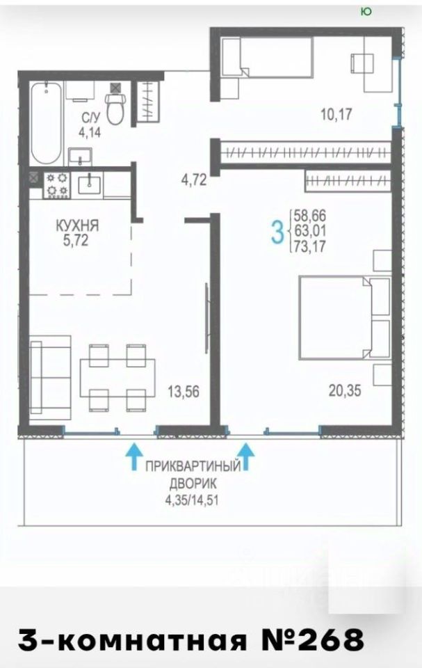 Общая площадь73,17 м2