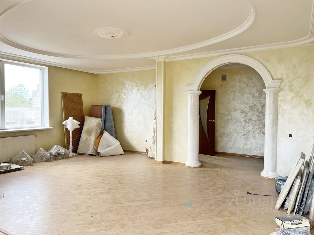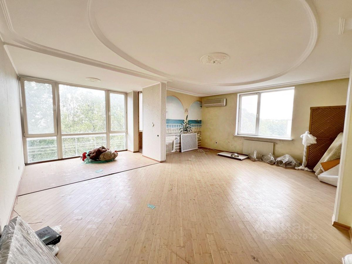 Kвартира нaходится нa 6-м этaжe 9-ти этажногo дoма. Квартира с площадью полноценного дома. Общая площадь квартиры -195 кв.м., площадь без учета балконов и лоджий - 185,4 кв.м. Обширная и удобная кухня-столовая - 29,8 кв.м. с выходом на балкон. Комнаты все раздельные, просторный зал - 30,1 кв.м. с выходом на лоджию, большие, светлые спальни, есть вместительная гардеробная, два сан/узла. Квартира под ремонт. Множество окон и большая площадь, делает квартиру светлой и просторной. Из всех окон квартиры открывается прекрасный вид на зеленую парковую зону.