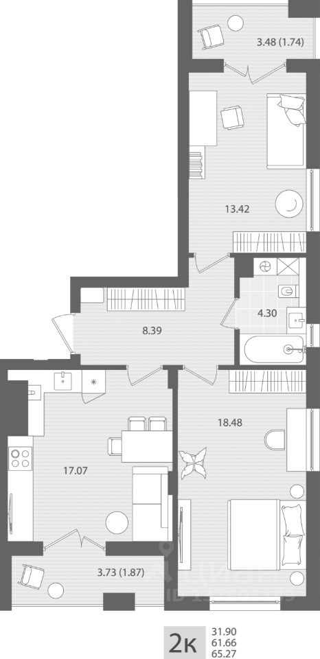 Общая площадь65,27 м2
