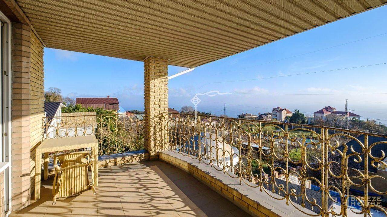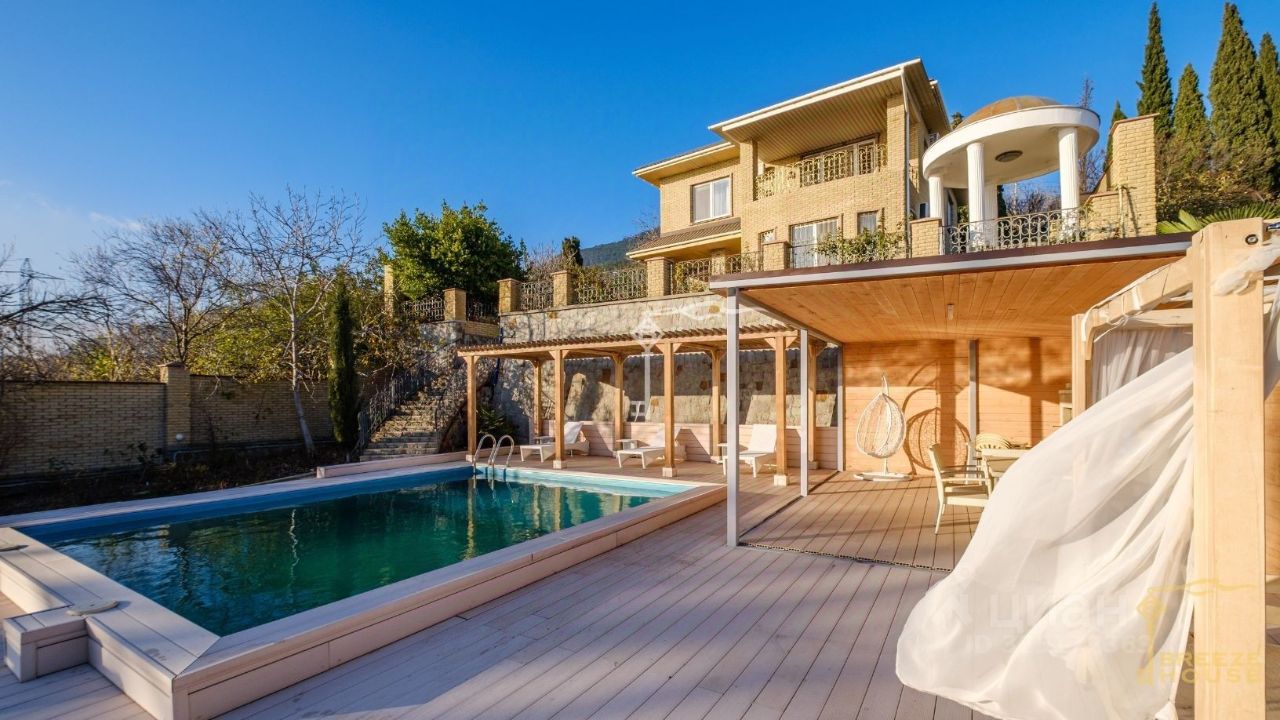 Просторный 3-этажный дом площадью 460 м² с видом на море, собственным бассейном и баней на участке 12 соток в Никите, вблизи Ялты.