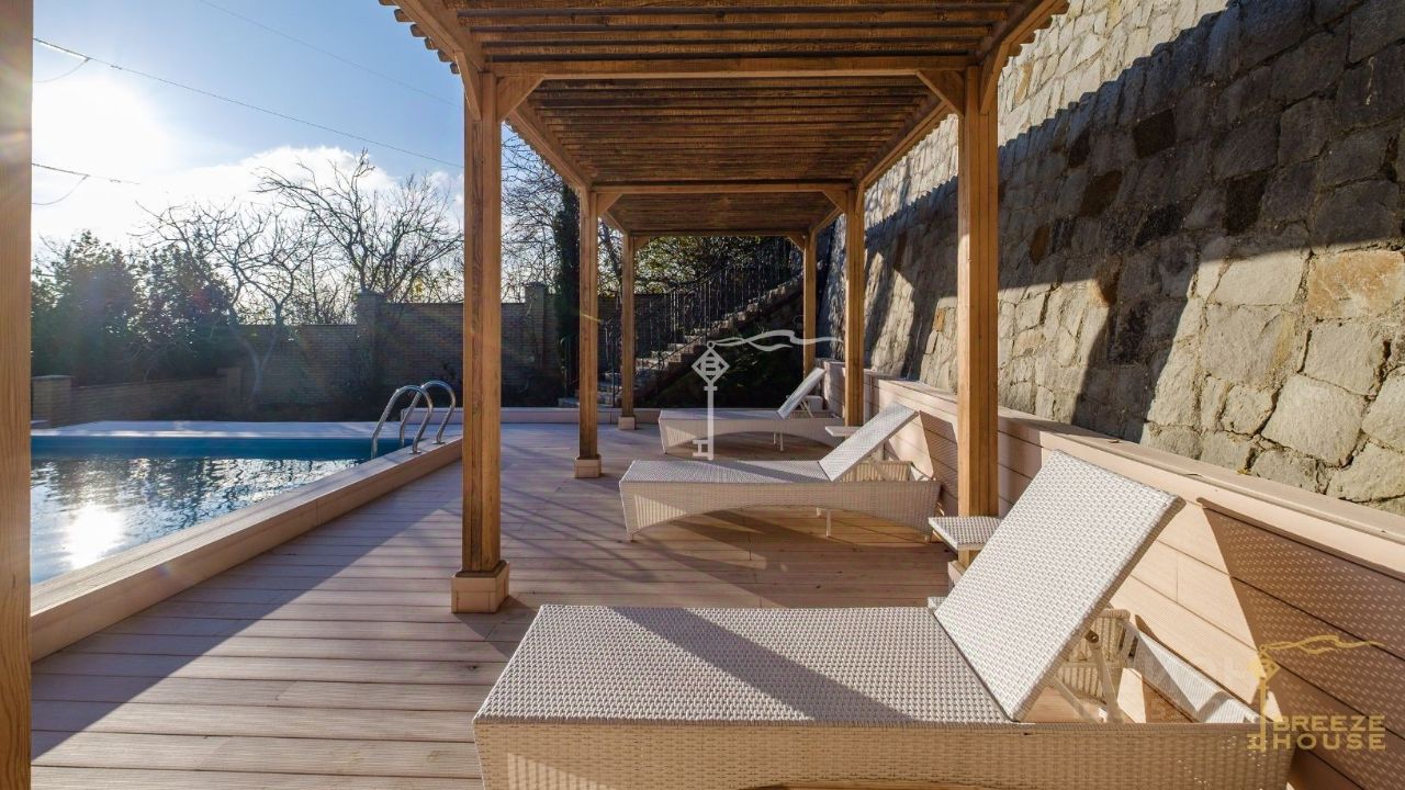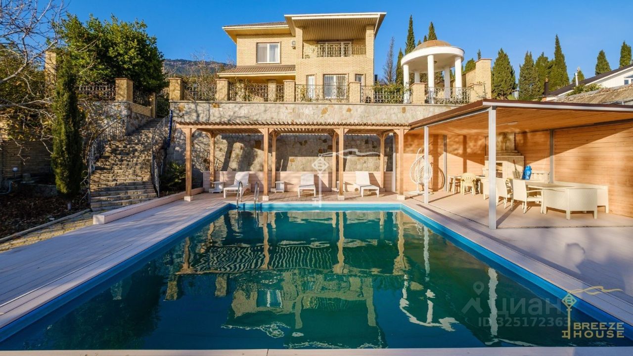 -Террасированный рельеф образует три самостоятельные зоны: основную жилую, гостевую и зону отдыха. -Ландшафтный дизайн с редкими видами растений, фруктовым садом и автоматическим поливом создает атмосферу частного парка. -Закрытая территория с удобным подъездом с двух сторон обеспечивает безопасность и спокойствие. -Просторный бассейн с солнечной террасой, перголой, BBQ и обеденной зоной становится центром отдыха в любую погоду. -Гараж на два автомобиля, две дополнительные парковочные площадки, детская игровая зона и уютная беседка. -Панорамные виды на Ялту, море и горы, которые открываются с разных уровней участка.