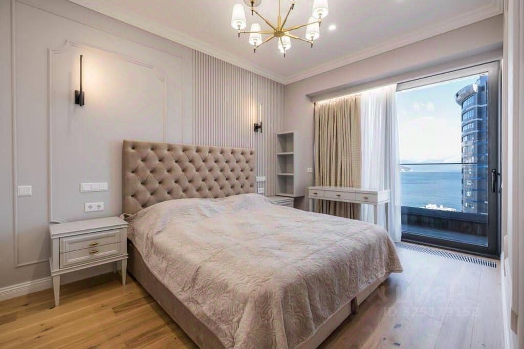 Одно из ключевых преимуществ квартиры — открытый балкон с великолепным видом на море и Приморский парк. Утренний кофе с таким пейзажем станет вашей ежедневной традицией.