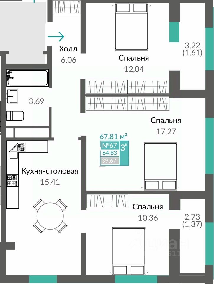 Продаётся 3-комнатная квартира в строящемся доме (Корпус 1), срок сдачи: I-кв. 2026, общей площадью 67.81 кв.м., на 9 этаже. Новый жилой комплекс ''Шалфей'' от застройщика ''Монолит'' расположен по адресу: Россия, Республика Крым, Симферополь, проспект Александра Суворова