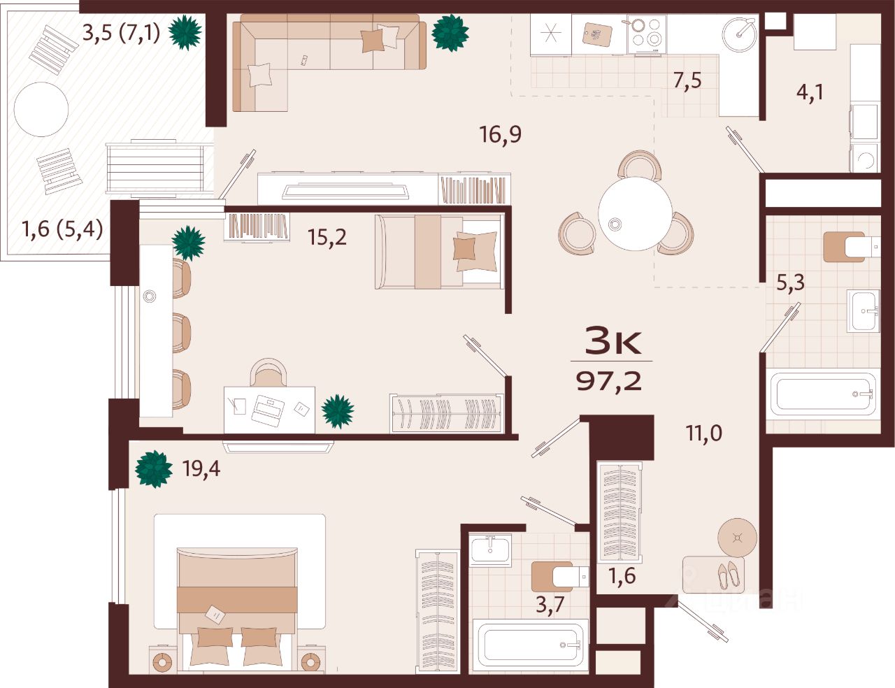 Продаётся 3-комнатная квартира в строящемся доме (Корпус 1), срок сдачи: II-кв. 2027, общей площадью 96.7 кв.м., на 7 этаже. Жилой комплекс бизнес-класса ''РОЯЛТА'' от застройщика ''ГК ТОЧНО'' в городе Ялта Республики Крым на улице Спендиарова.