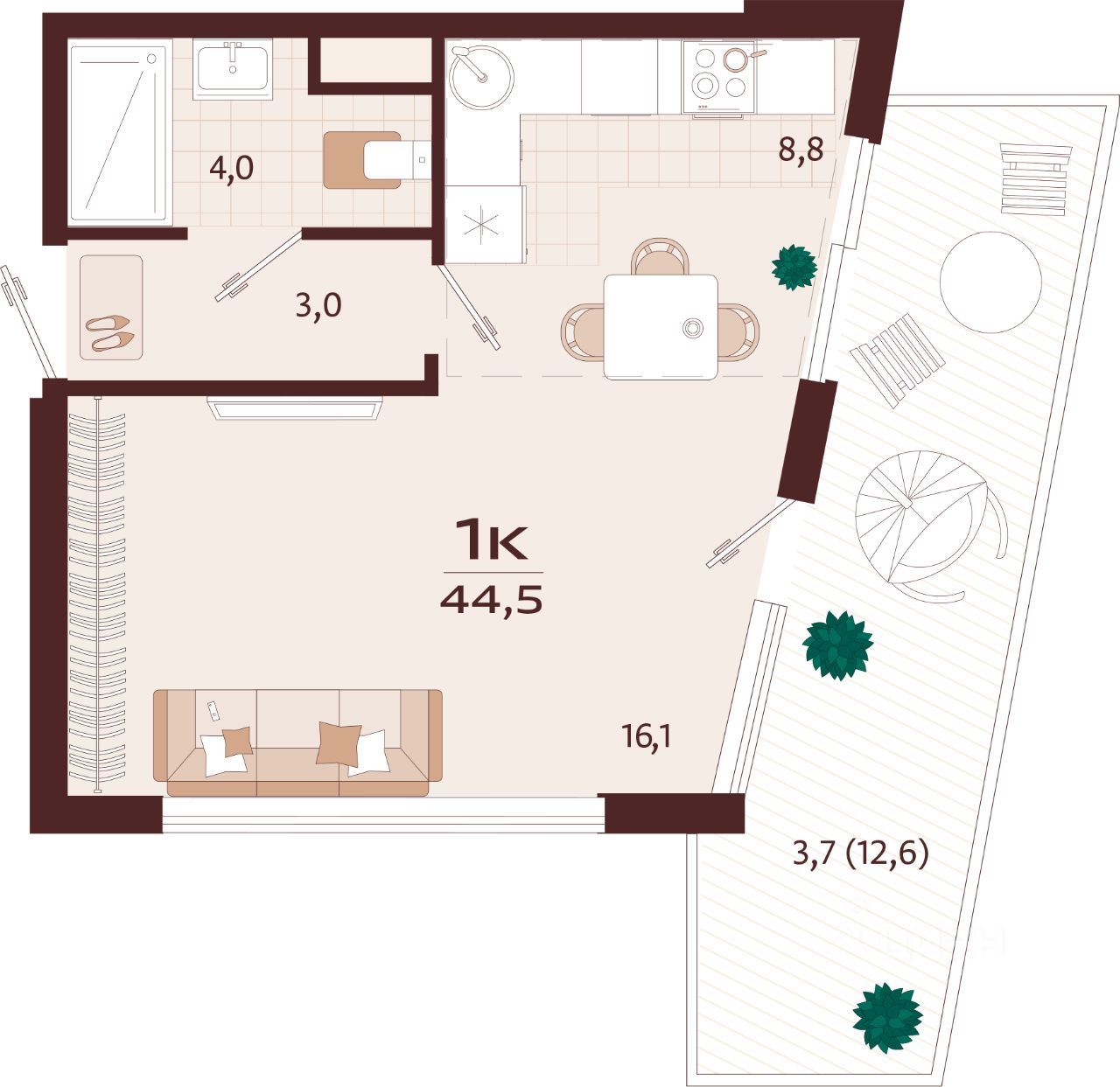 Продаётся 1-комнатная квартира в строящемся доме (Корпус 1), срок сдачи: II-кв. 2027, общей площадью 44.5 кв.м., на 7 этаже. Жилой комплекс бизнес-класса ''РОЯЛТА'' от застройщика ''ГК ТОЧНО'' в городе Ялта Республики Крым на улице Спендиарова.
