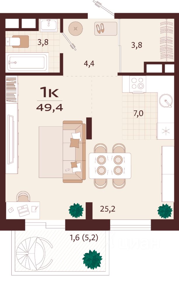 Общая площадь49,4 м2