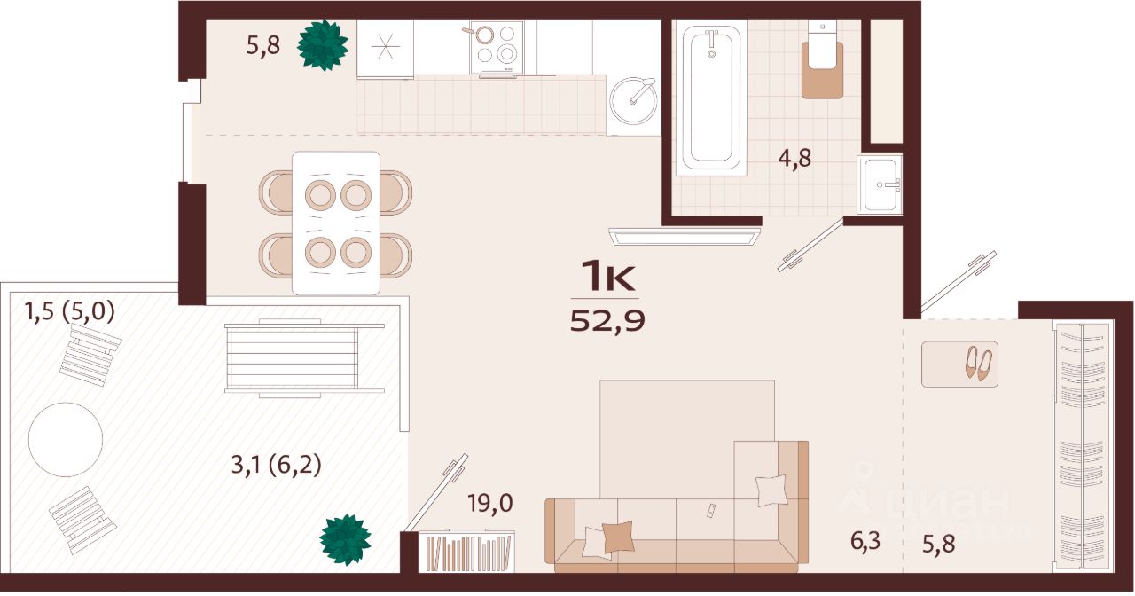 Продаётся 1-комнатная квартира в строящемся доме (Корпус 1), срок сдачи: II-кв. 2027, общей площадью 52.9 кв.м., на 2 этаже. Жилой комплекс бизнес-класса ''РОЯЛТА'' от застройщика ''ГК ТОЧНО'' в городе Ялта Республики Крым на улице Спендиарова.