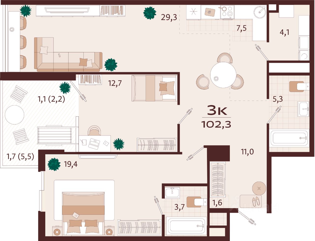 Продаётся 3-комнатная квартира в строящемся доме (Корпус 1), срок сдачи: II-кв. 2027, общей площадью 102.3 кв.м., на 4 этаже. Жилой комплекс бизнес-класса ''РОЯЛТА'' от застройщика ''ГК ТОЧНО'' в городе Ялта Республики Крым на улице Спендиарова.