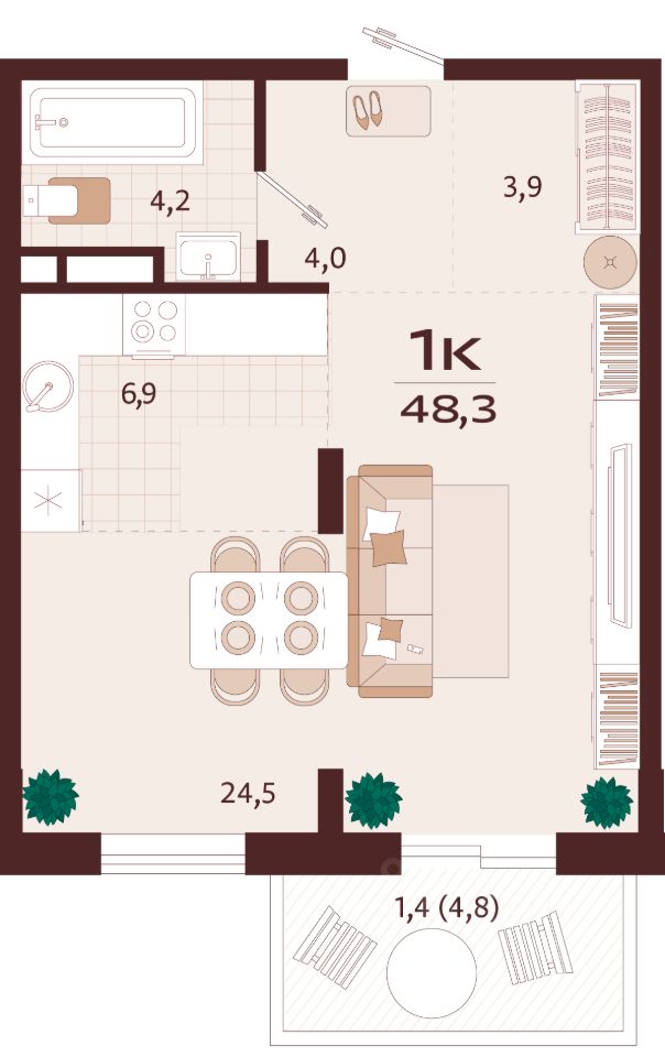 Продаётся 1-комнатная квартира в строящемся доме (Корпус 5), срок сдачи: II-кв. 2027, общей площадью 48.3 кв.м., на 8 этаже. Жилой комплекс бизнес-класса ''РОЯЛТА'' от застройщика ''ГК ТОЧНО'' в городе Ялта Республики Крым на улице Спендиарова.