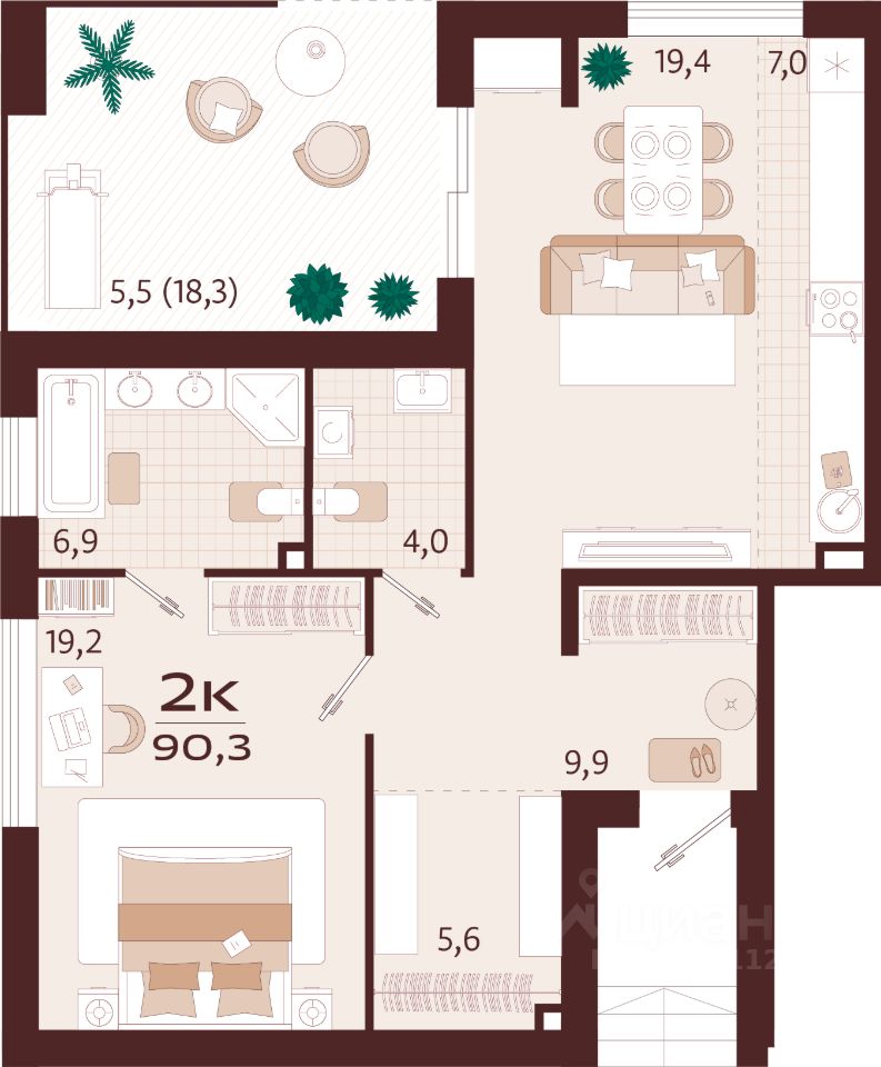 Общая площадь90,3 м2