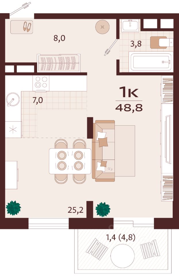Общая площадь48,8 м2