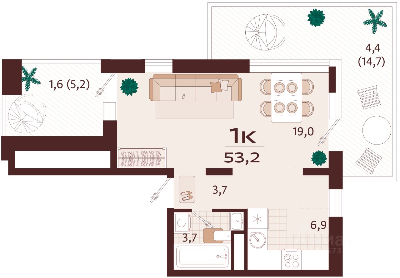 Общая площадь53,2 м2