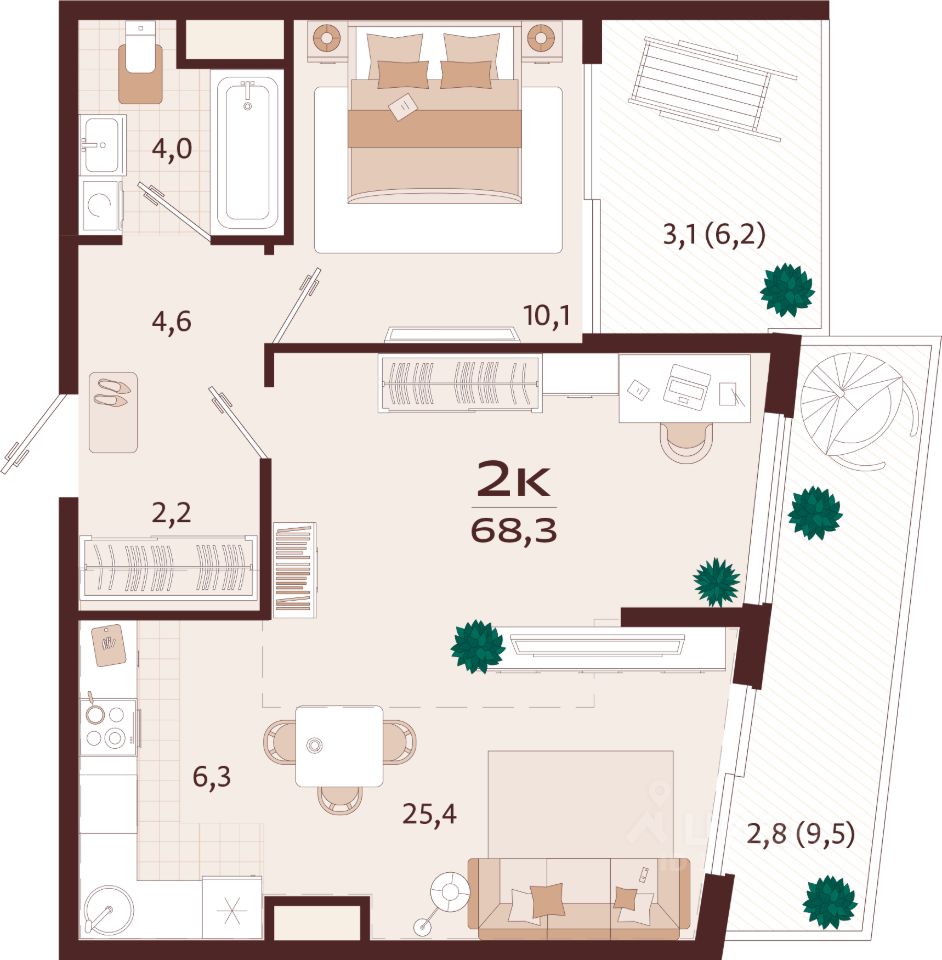 Продаётся 2-комнатная квартира в строящемся доме (Корпус 1), срок сдачи: II-кв. 2027, общей площадью 68.3 кв.м., на 2 этаже. Жилой комплекс бизнес-класса ''РОЯЛТА'' от застройщика ''ГК ТОЧНО'' в городе Ялта Республики Крым на улице Спендиарова.