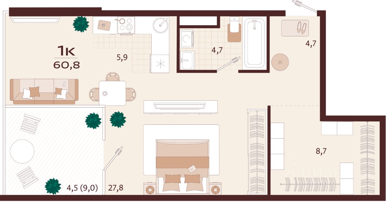Продаётся 1-комнатная квартира в строящемся доме (Корпус 1), срок сдачи: II-кв. 2027, общей площадью 60.8 кв.м., на 4 этаже. Жилой комплекс бизнес-класса ''РОЯЛТА'' от застройщика ''ГК ТОЧНО'' в городе Ялта Республики Крым на улице Спендиарова.