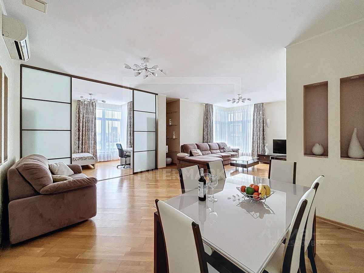 ID 28324. Свободна с 15 января. Предлагается в аренду уютная 4-комнатная квартира в элитном жилом комплексе ''Триумф Палас'' . Современный ремонт, отделка экологичными материалами. Общая площадь 162 кв. м. Планировочное решение включает: просторную гостиную, 3 спальни, изолированную кухню, 2 ванные комнаты. Инженерное оснащение соответствует высоким стандартам: установлены кондиционеры, бойлер, стиральная машина с сушкой, посудомоечная машина. Окна выходят на 2 стороны, из них открываются прекрасные виды на Москву. Возможна парковка на охраняемой огороженной территории комплекса, в стоимость входит машино-место в подземном гараже. В комплексе развитая инфраструктура: магазин, салон красоты, фитнес-центр с бассейном, автомойка, детская площадка. Рядом замечательный Чапаевский сквер. Животные обсуждаются.