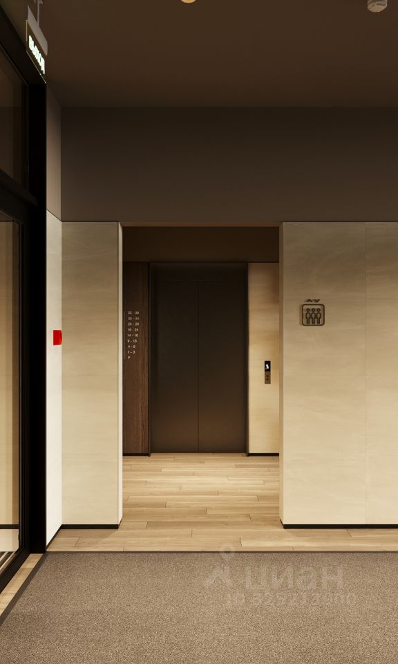 Дом монолитный, многоподъездный, переменной этажности, от 7 до 25 этажей. Квартира находится в 1-й секции высотой 25 этажей в корпусе 3-1. На этаже 8 квартир. В подъезде 2 пассажирских и 1 грузовой лифт.