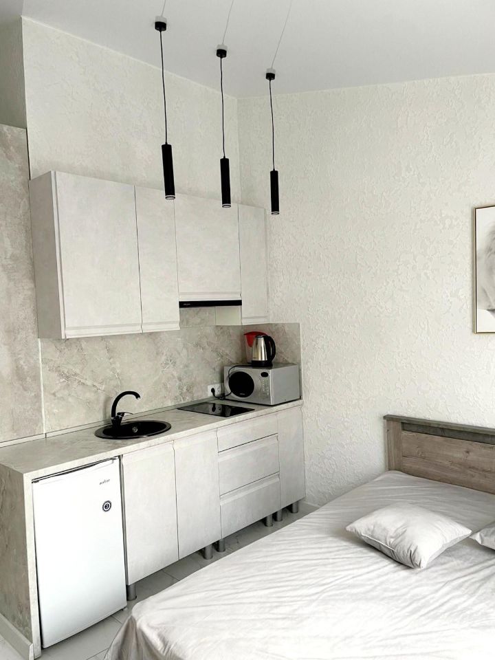 Есть все необходимое для проживания: утюг, фен, микроволновая печь, индукционная плита, стиральная машина, холодильник, телевизор, посуда. Отопление - кондиционер и теплый пол.