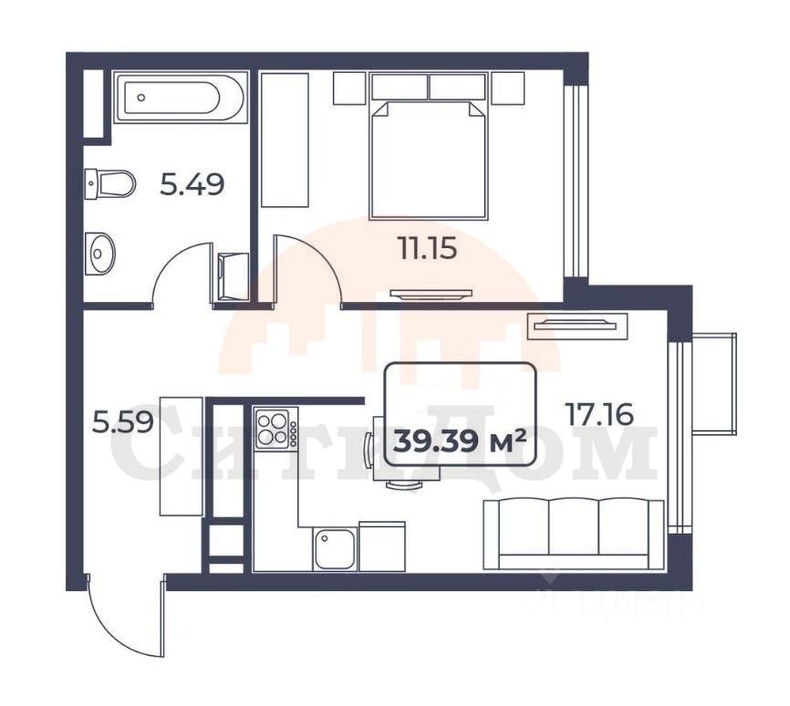 В строящемся ЖК продается 1-но комнатная квартира, которая состоит из спальни 11,15 кв.м., кухни-гостиной 17,16 кв. м., санузла 5,49 кв.м., прихожей 5,59 кв.м. Общая площадь квартиры 39,39 кв.м. Расположена на 1 этаже 8-ми этажного дома. До песчаного пляжа 1 км.