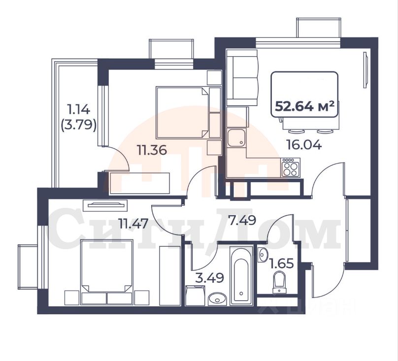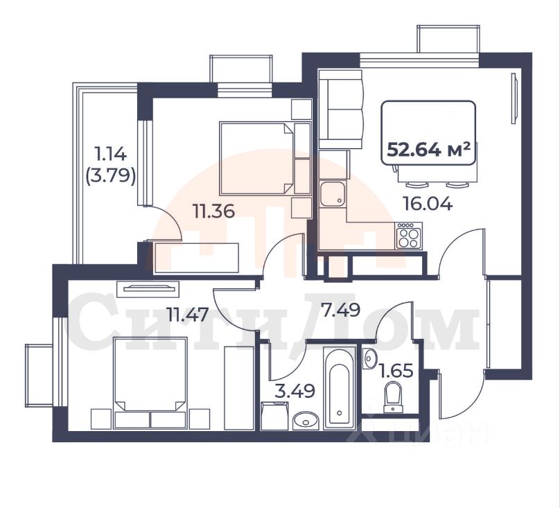 Общая площадь52,64 м2
