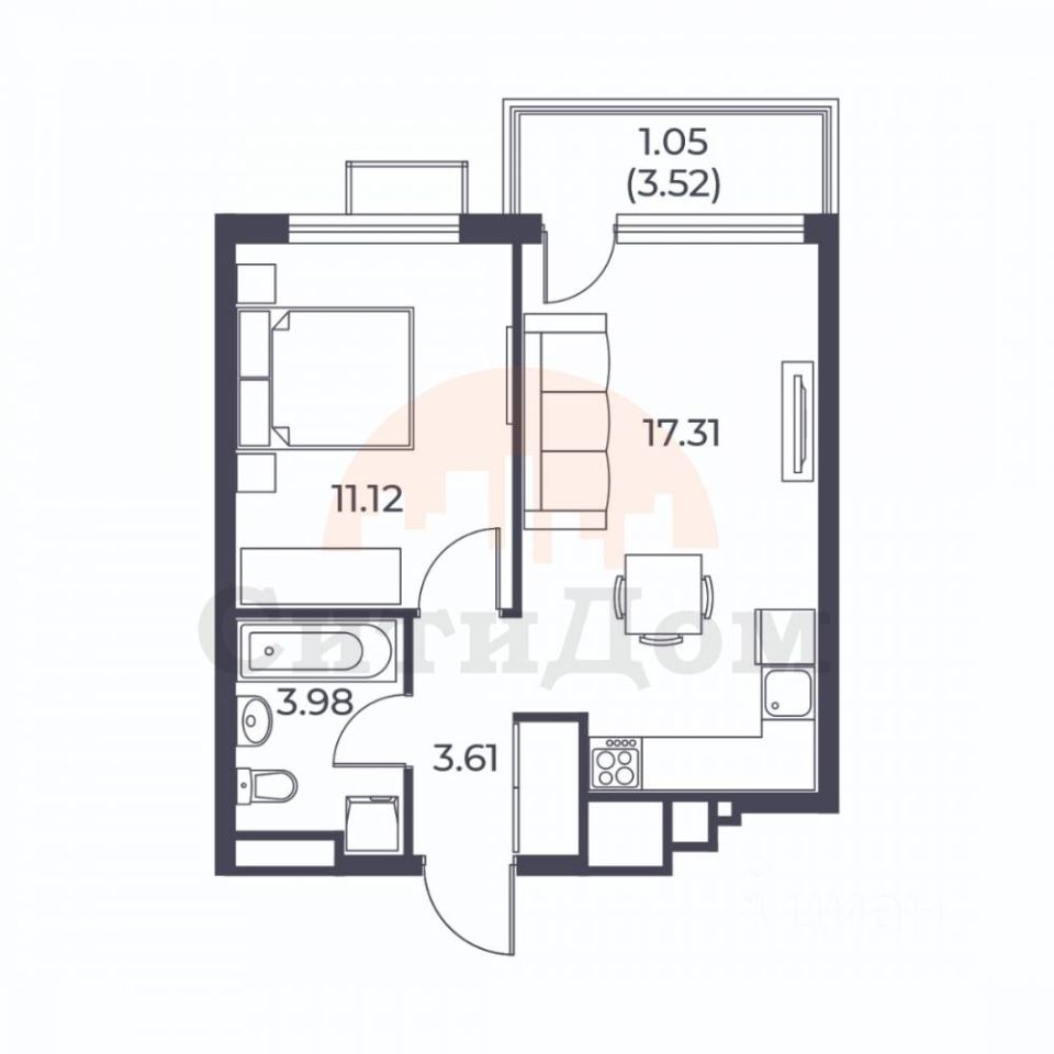 Общая площадь37,07 м2