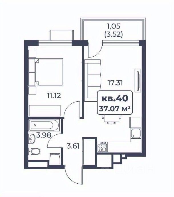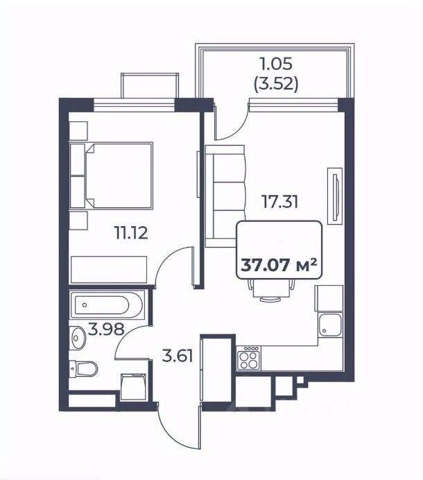 Общая площадь37,07 м2