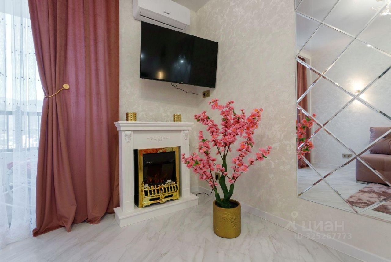 Квартира-студия находится во 2-й очереди комплекса Лучистое (сдан в эксплуатацию в 2025 году). Расположена на 8 этаже 16 этажного жилого дома. Общая площадь - 31 кв.м. (с учетом балкона). С балкона открывается панорамный вид на горы и море. В квартире выполнен качественный ремонт, укомплектована всей необходимой мебелью и техникой. Установлен кондиционер. В квартире установлены теплые полы в сан.узле и частично в жилой зоне, уложена плитка. Обои на стенах, потолки натяжные. Отопление (внутрипольные конвекторы) и горячая вода в доме от собственной котельной.