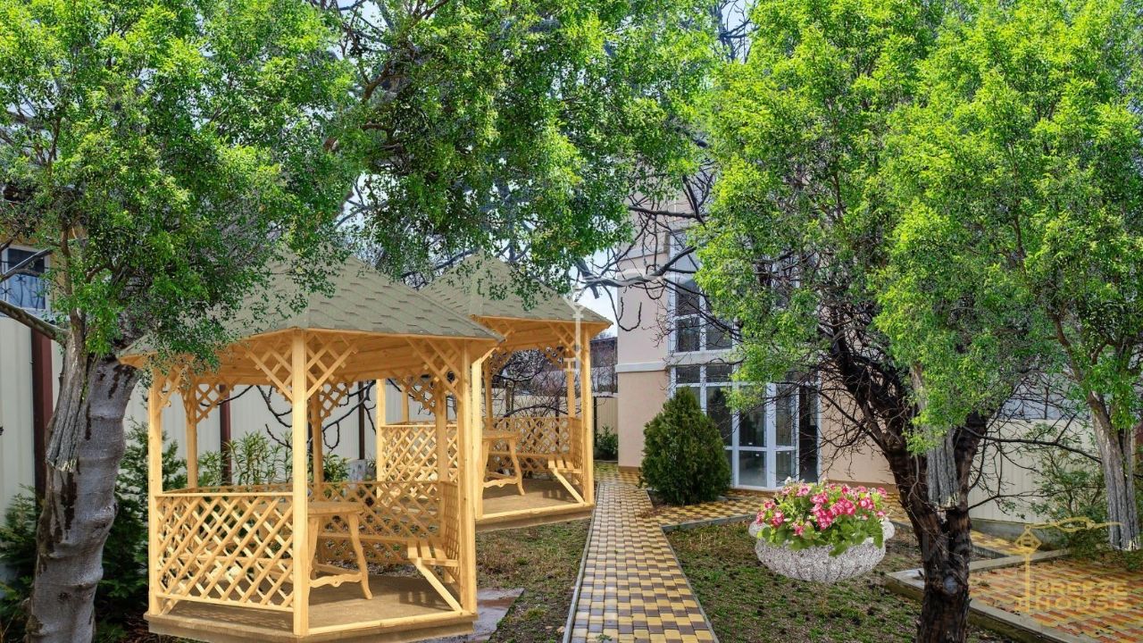 -просторный 2-комнатный номер с выходом в сад и собственной беседкой, -двухместный номер со своим приватным зеленым двориком, качелями и зоной BBQ.