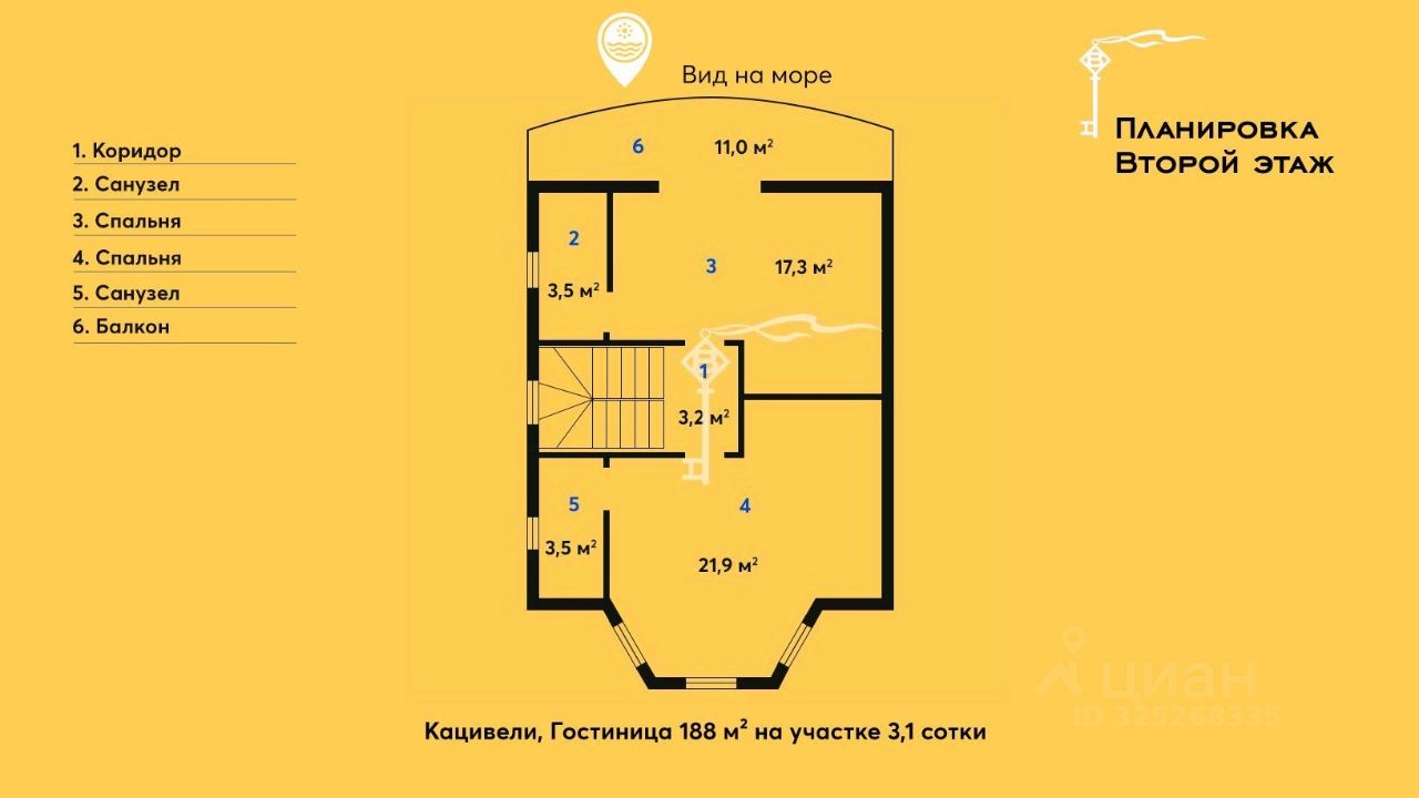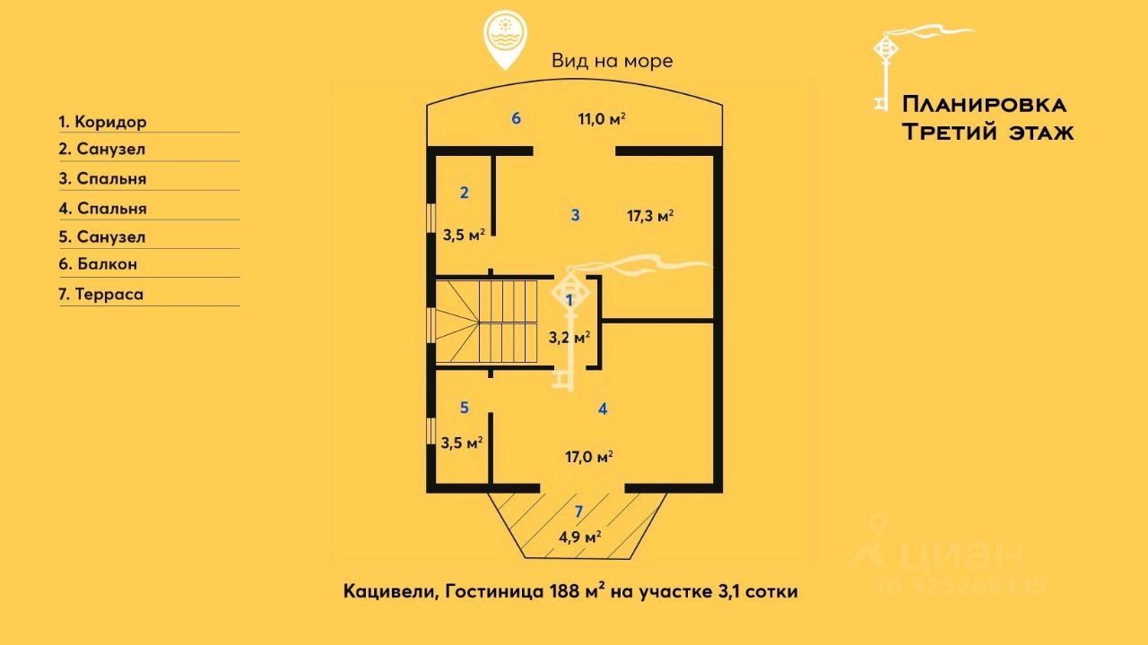 Продажа нового трехэтажного гостевого дома на 6 номеров с террасами с великолепным видом на Черное море, расположенного на участке 3,1 соток в живописном поселке городского типа Кацивели.