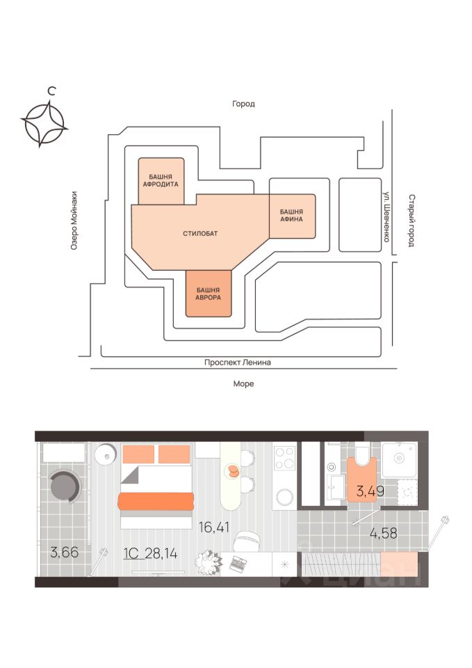 продам 1-к, Ленина проспект, 6010 693 200 ₽