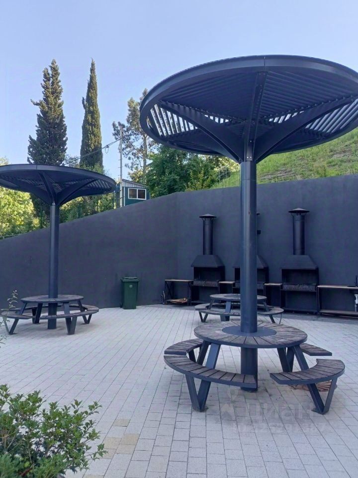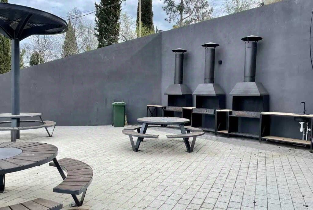 Внутренняя территория комплекса располагает к неспешным прогулкам вдоль прохладных тенистых аллей с арт-объектами и приятным дружеским беседам в лаунж-зонах и зонах барбекю.