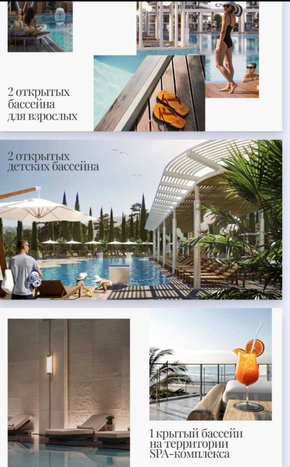 В распоряжении собственников и гостей круглогодичный СПА-центр, двухуровневый бассейн, детские бассейны, многофункциональная игровая площадка, основной бассейн площадью 800 м² и фреш-бар. На территории объекта располагается торгово-развлекательный комплекс с модными бутиками и развлечениями: кинотеатр, гастрономическая улица, тренажёрный зал, видовой ресторан. Не упустите уникальное и выгодное предложение!!! По факту - это готовый доходный бизнес! Помогу с посуточной сдачей в аренду по принципу доверительного управления. Воспользовавшись им Вы делаете невероятно выгодное инвестиционное вложение, а также становитесь собственником жилья европейского уровня комфорта у моря.