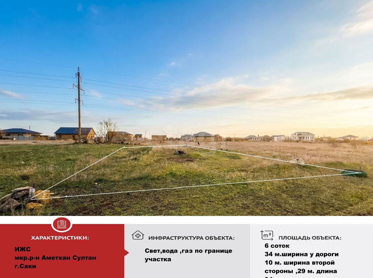 Продаётся участок для постройки дома своей мечты, расположенный в новом жилом активно застраивающемся районе г. Саки.