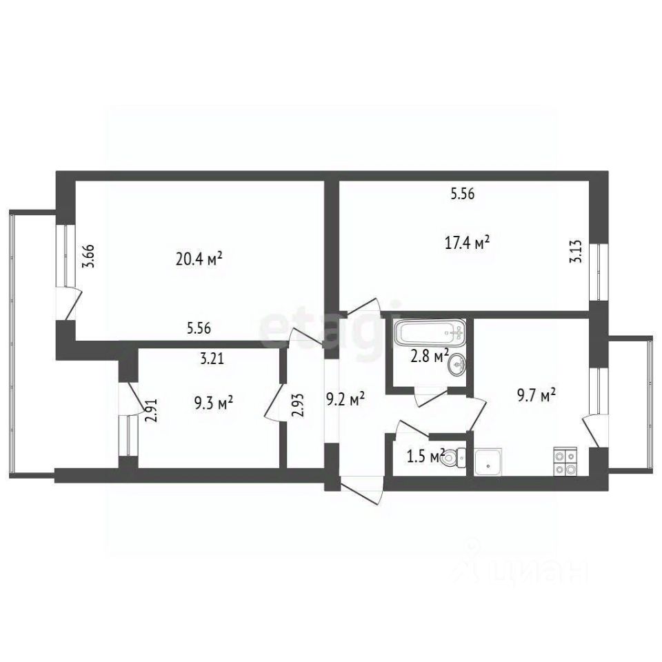 Квартира имеет выгодную планировку: жилая площадь -46 кв. м, изолированные комнаты, просторная кухня -9,3 кв. м и раздельный санузел. Все помещения светлые, окна выходят на две стороны — на улицу и во двор, обеспечены балкон и лоджия. Высота потолков составляет 2,6 метра. Ключевое преимущество — полностью автономная система отопления и горячего водоснабжения на основе двухконтурного котла и накопительной емкости 500 литров, расположенной на техническом этаже, что гарантирует независимость и экономию.