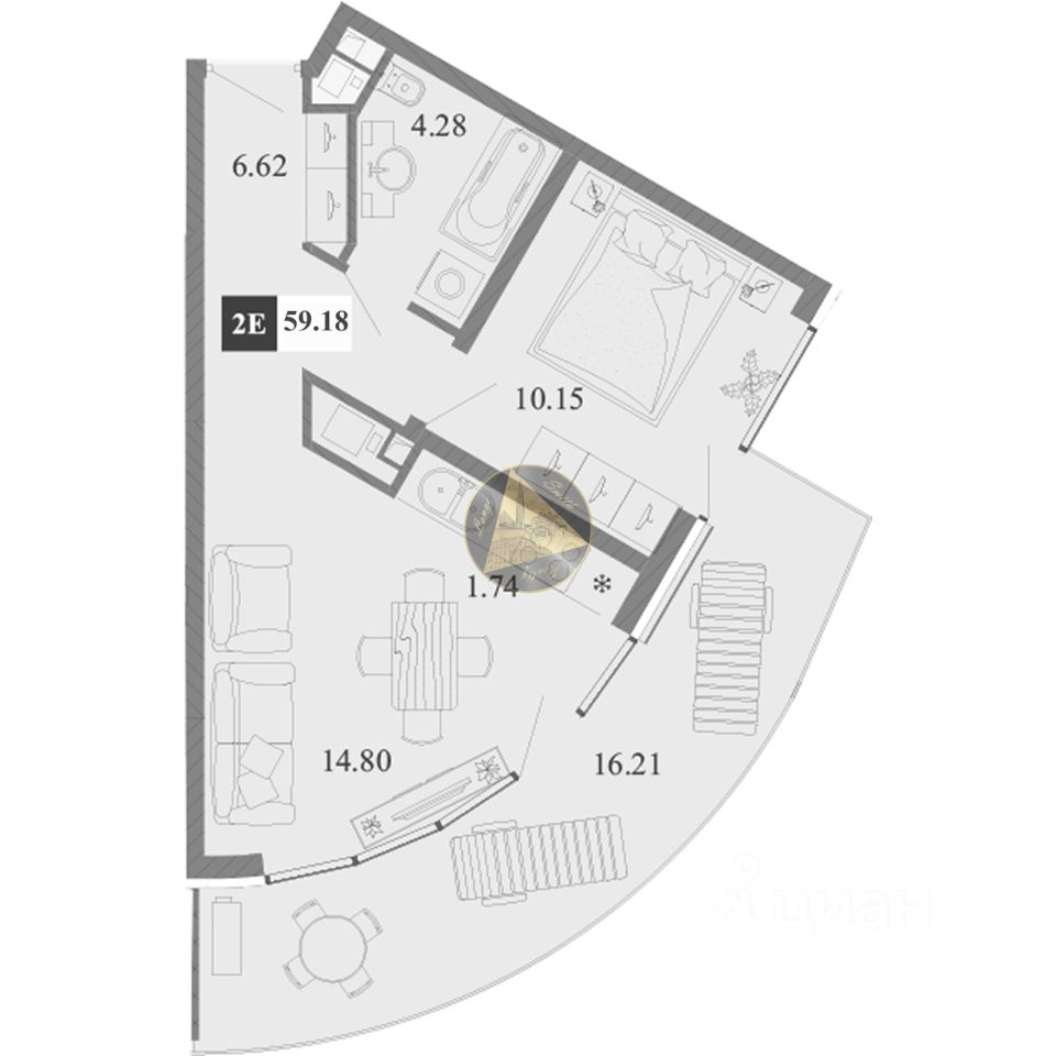 О квартире: - Квартира находится на 16 этаже 20-этажного дома - Общая площадь квартиры 59.18 м2 - Светлая спальня 10.15 м2 - Просторная кухня-гостиная 16.54 м2 - Совмещённый санузел 4.28 м2 - Балкон 16.