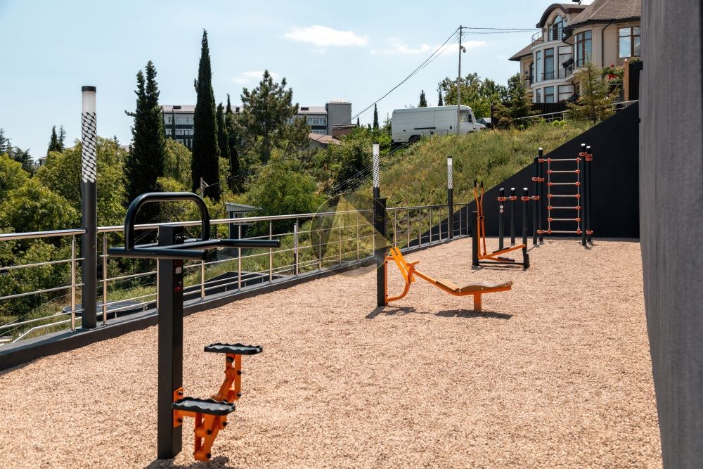 PRO дом и район: - Для резидентов на территории предусмотрены открытый инфинити-бассейн с аква-баром, детский бассейн, воркаут-зоны, роллердром, скалодром, памп-трек, велосипедные и беговые дорожки, поле для мини-футбола и волейбола, зоны барбекю, лаунж-зоны, смотровая площадка и амфитеатр. - Для владельцев авто спроектированы подземные многоуровневые паркинги. Комплекс окружен кипарисовой и миндальной рощами, а к морю курсируют электрокары. - Жителям комплекса доступны ТРЦ с кинотеатром, фудкортом и детским центром, фитнес-центр, спа-комплекс, ресторан и медицинский центр. - В пределах 1015 минут транспортом находятся кафе, рестораны и Дом-музей С. Н. Сергеева-Ценского, крепость Алустон, заповедник, смотровые площадки и другие достопримечательности. - До набережной и пляжей — 5 минут пешком, до центра Алушты — 30 минут транспортом.