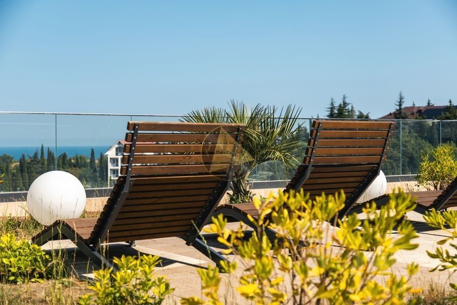 PRO дом и район: - Для резидентов на территории предусмотрены открытый инфинити-бассейн с аква-баром, детский бассейн, воркаут-зоны, роллердром, скалодром, памп-трек, велосипедные и беговые дорожки, поле для мини-футбола и волейбола, зоны барбекю, лаунж-зоны, смотровая площадка и амфитеатр. - Для владельцев авто спроектированы подземные многоуровневые паркинги. Комплекс окружен кипарисовой и миндальной рощами, а к морю курсируют электрокары. - Жителям комплекса доступны ТРЦ с кинотеатром, фудкортом и детским центром, фитнес-центр, спа-комплекс, ресторан и медицинский центр. - В пределах 1015 минут транспортом находятся кафе, рестораны и Дом-музей С. Н. Сергеева-Ценского, крепость Алустон, заповедник, смотровые площадки и другие достопримечательности. - До набережной и пляжей — 5 минут пешком, до центра Алушты — 30 минут транспортом.