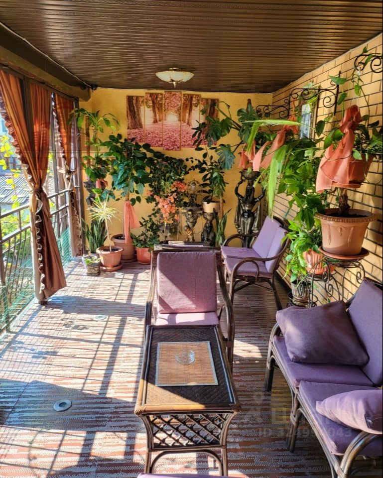 На втором этаже расположена уютная зелёная открытая веранда с плетёной мебелью для отдыха большой компанией.