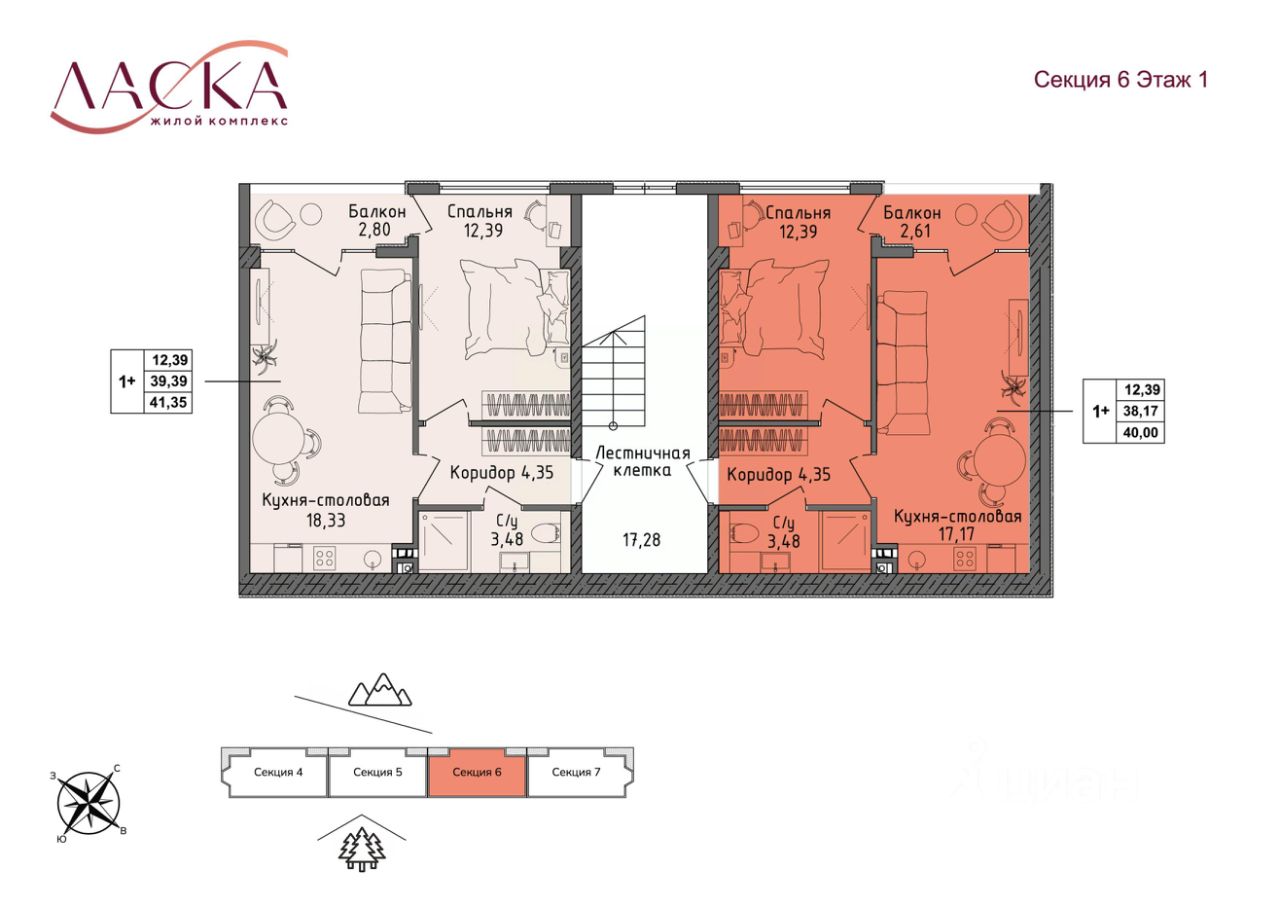 На каждом этаже всего 2 квартиры, что обеспечивает приватность.